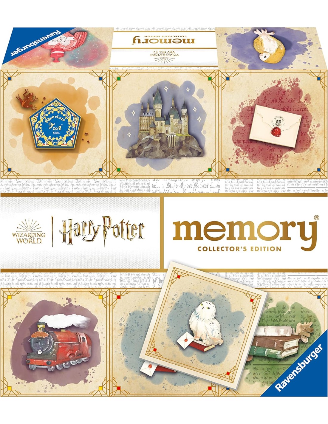 Questo memory Harry Potter è la speciale collectors edition e contiene 64 tessere con le immagini di 32 tra personaggi e luoghi più amati della saga. Un regalo ottimo per tutti i bambini e bambine, ma anche per chiunque sia appassionato del magico mondo di Harry Potter