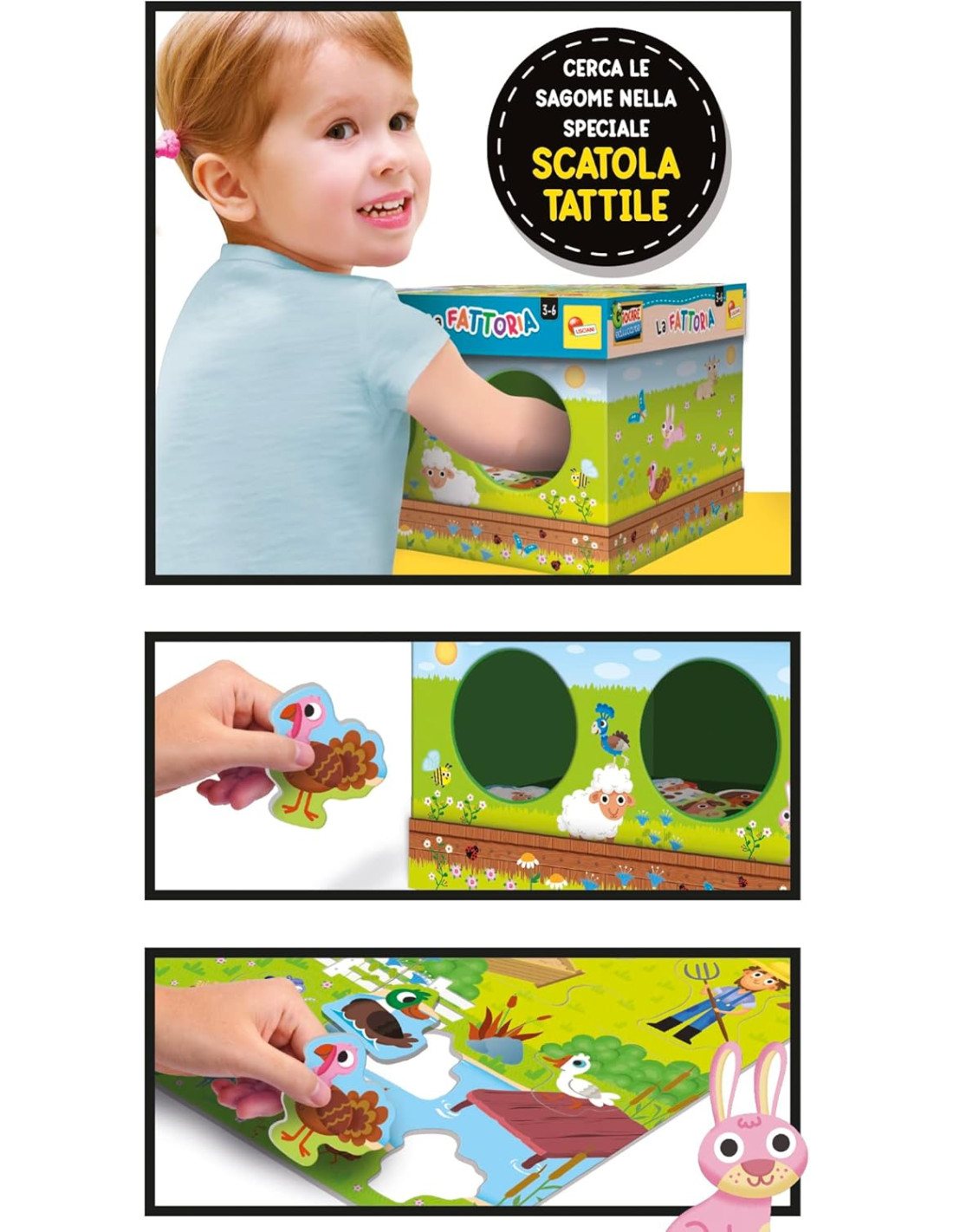 Grande puzzle della fattoria, animali sagomati, maxi scatola tattile, istruzioni