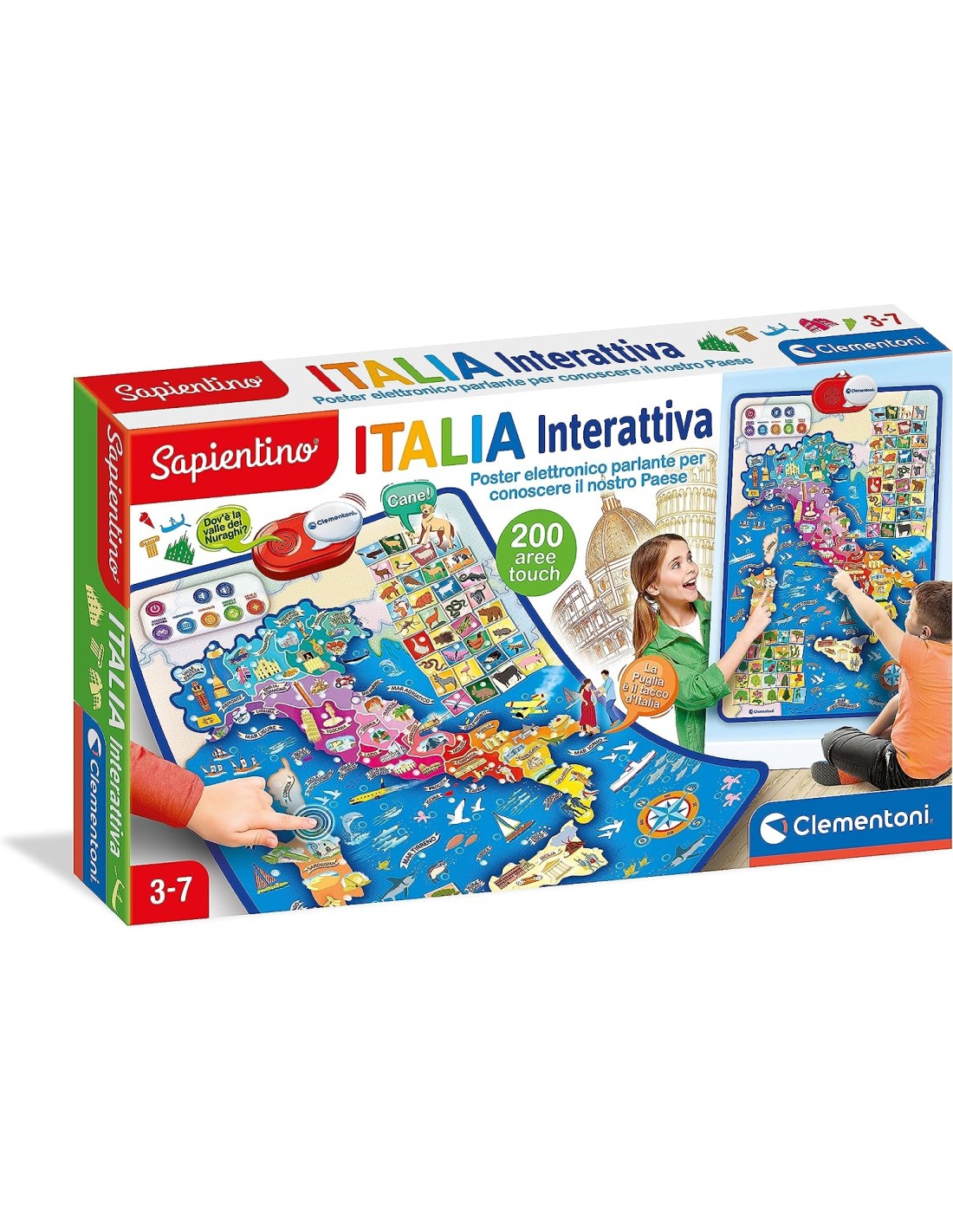 Con 200 punti di contatto e 5 modalità di gioco, la mappa accompagnerà il bambino alla scoperta della geografia italiana. il poster interattivo misura 70 x 48cm, ha volume regolabile e spegnimento automatico.