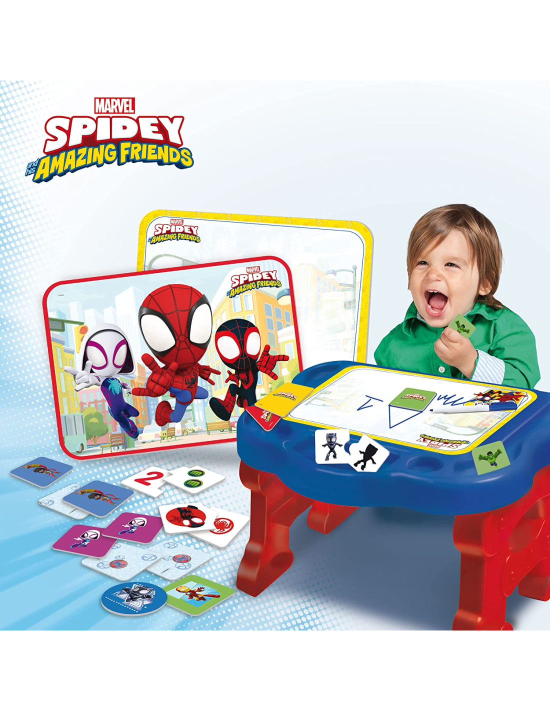 Spidey Super Desk Edugames contiene Tanti giochi educativi con un tavolino a misura di bambino!