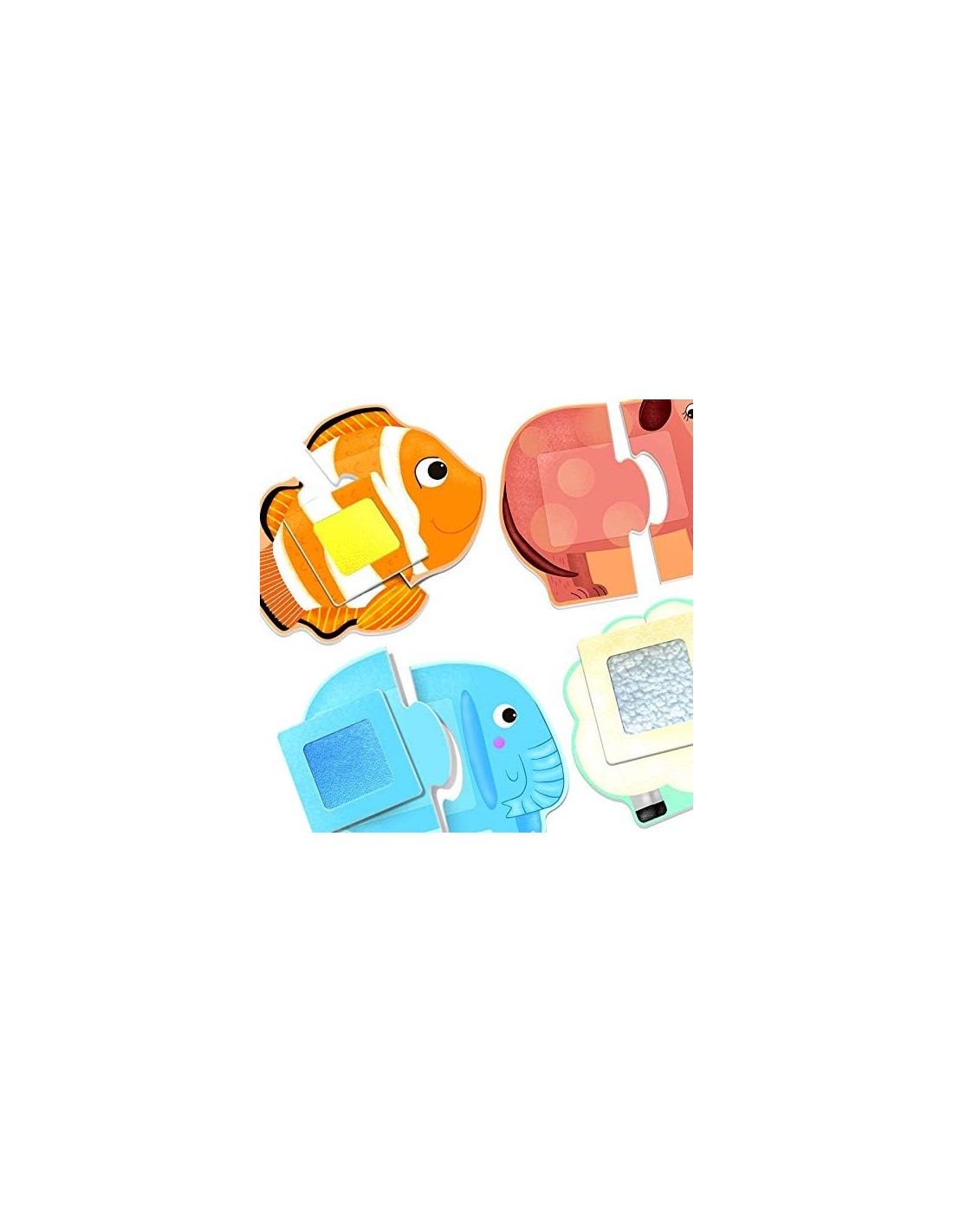 OTTIMI CONTENUTI per giocare in più modi e divertirsi imparando: 6 puzzle degli animali, 6 tessere tattili, sacchetto 100% cotone organico.