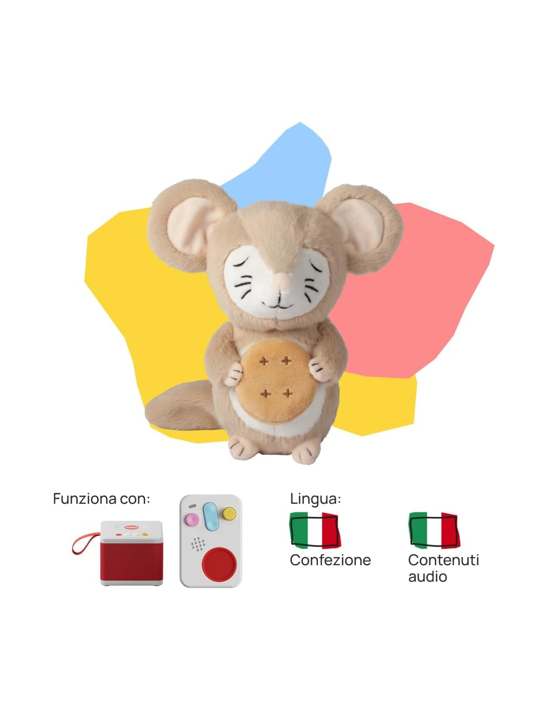 PELUCHE: con Disco Sonoro da posizionare su FABA Raccontastorie o sul Raccontastorie interattivo FABA+ grazie al quale bambini e bambine possono ascoltare in autonomia le storie. Il Raccontastorie non è incluso. Se il contenuto audio non parte automaticamente con FABA Raccontastorie, è necessario aggiornarlo con l'app per computer MyFaba