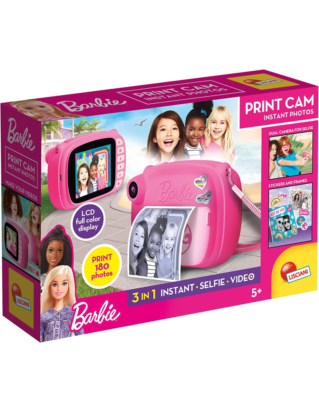 Lisciani Giochi- Barbie Print Cam Hi-Tech, Bambini Da 4 Anni, Fotocamera Istantanea, Stampa Subito Le Tue Foto, Funzione Video E Selfie