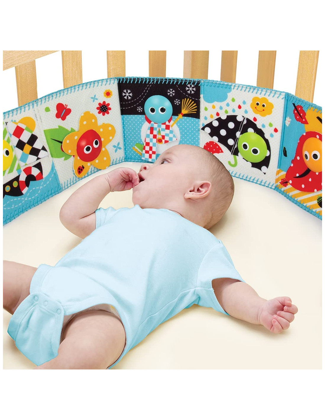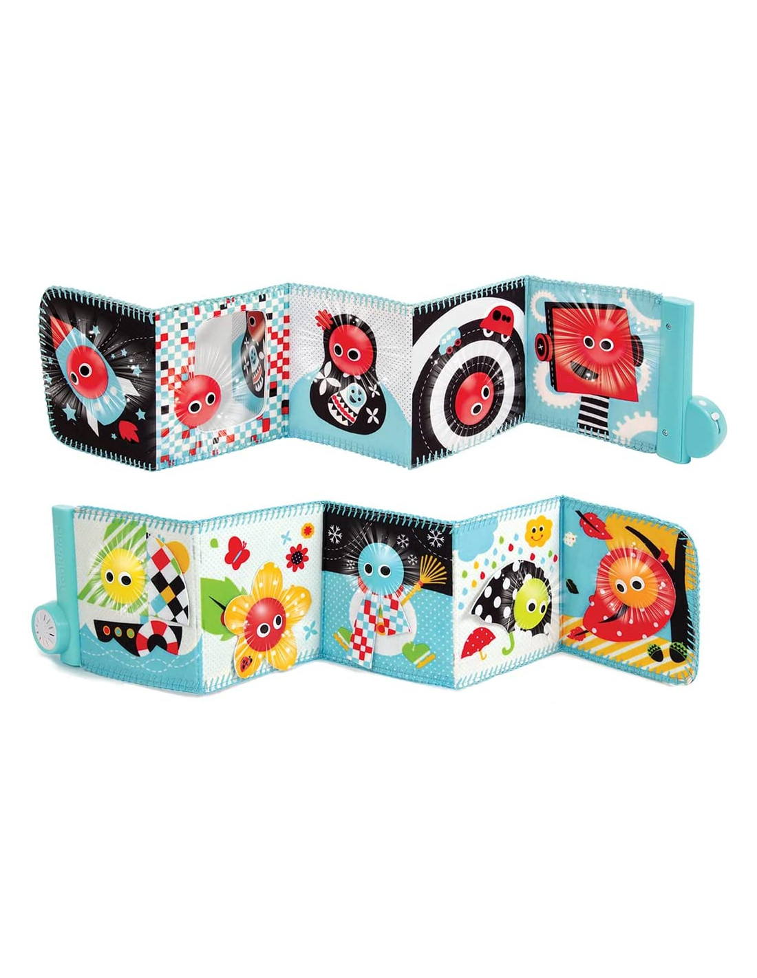 Libro con copertina a doppio lato per diverse fasi di sviluppo. Da usare su culla, carrozzina o sul pavimento.