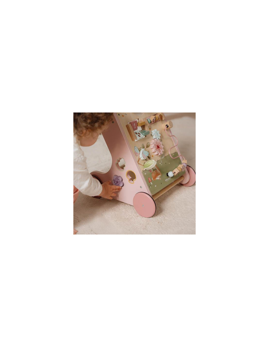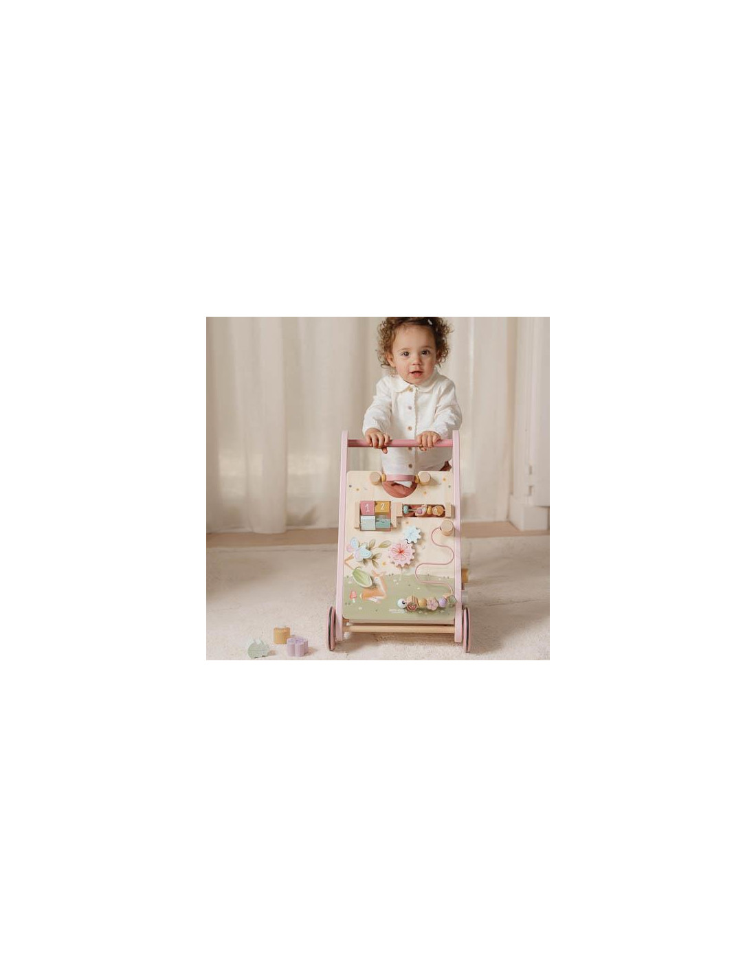 Questo girello in legno offre varie attività stimolanti che supportano lo sviluppo delle capacità motorie del tuo bambino.