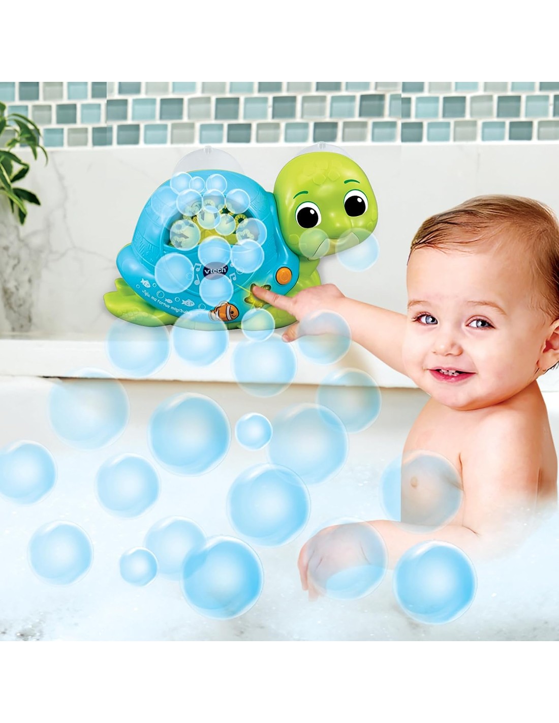 Una simpatica tartaruga che spara le bolle per un bagnetto super divertente!