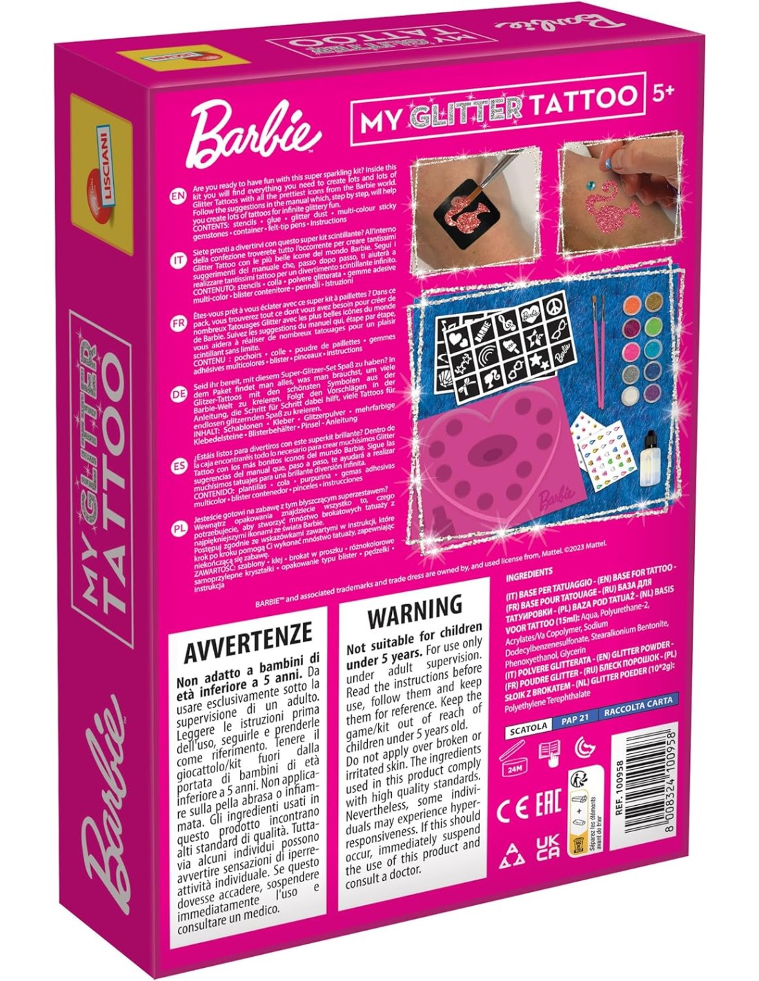 Con materiale sicuro e testato, si potranno creare tanti tattoo con le icone più fashion di Barbie e dare ancora più luce con le emme adesive