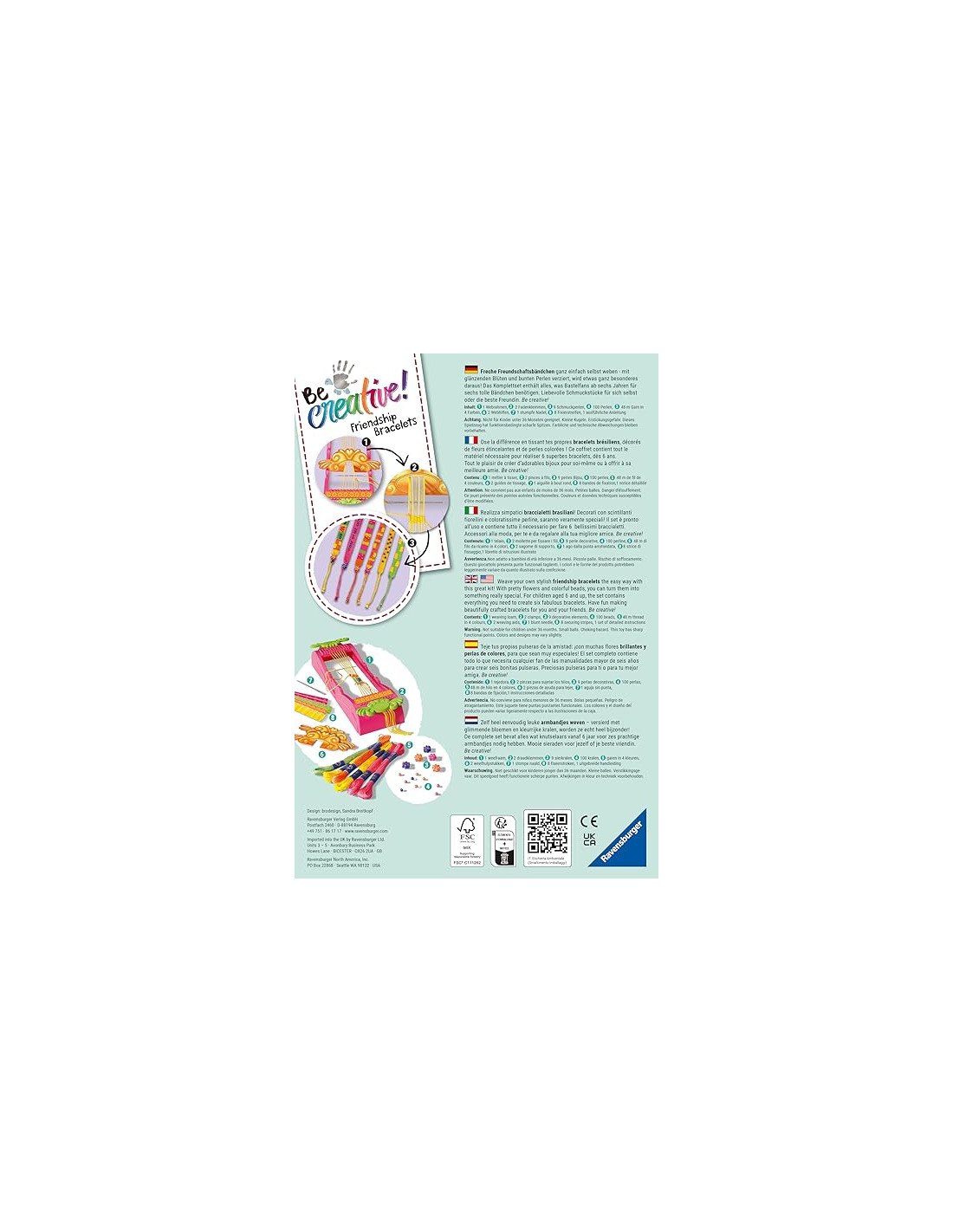 Ravensburger - Be Creative Midi, Telaio Braccialetti dell'Amicizia, Gioco Creativo Fai-da-te, Lavoretti Creativi, Intrecciare Braccialetti, Idea Regalo Bambino e Bambina 6+ Anni
