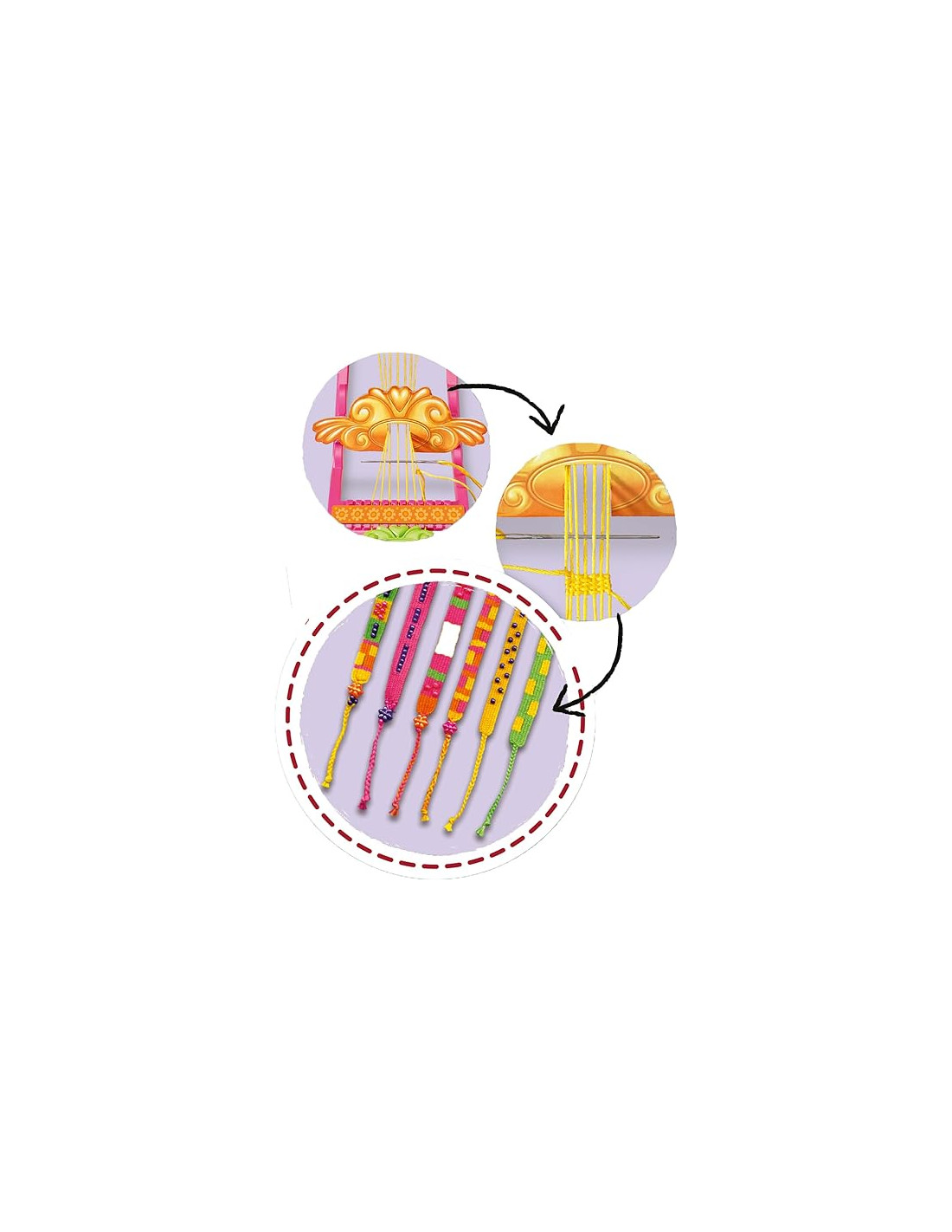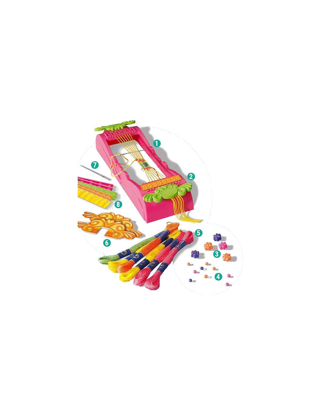 GIOCHI CREATIVI: il regalo ideale per bambini e bambine che amano creare degli oggetti unici e originali con tecniche creative KIT COMPLETO PER IL FAI-DA-TE: il kit comprende fili in diversi colori, supporto di plastica per intrecciare, spilla da balia e istruzioni dettagliate