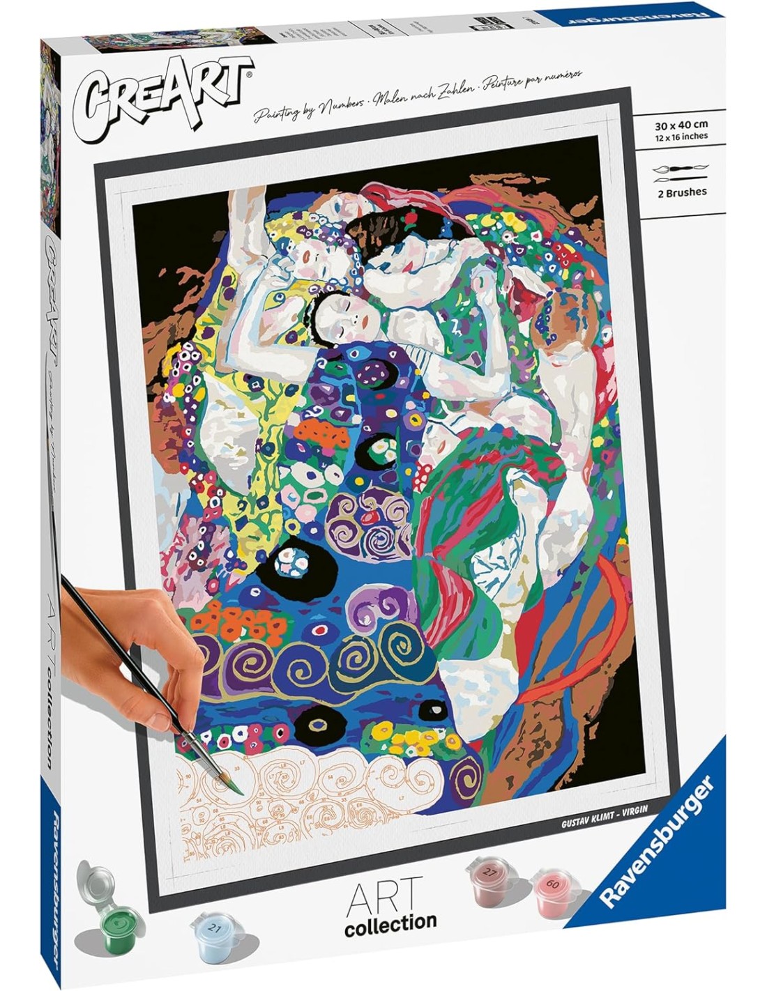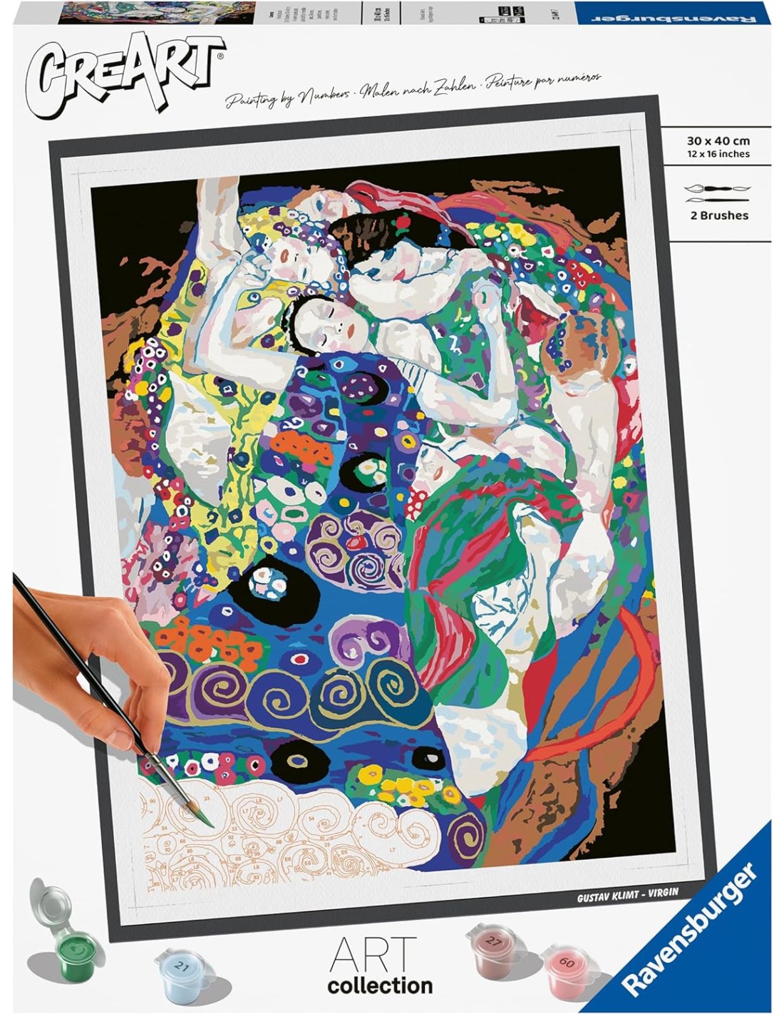Ravensburger - CreArt ART COLLECTION Klimt: La vergine, Kit per Dipingere con i Numeri, Contiene Tavola Prestampata 30 x 40 cm, 2 Pennelli, Colori e Accessori