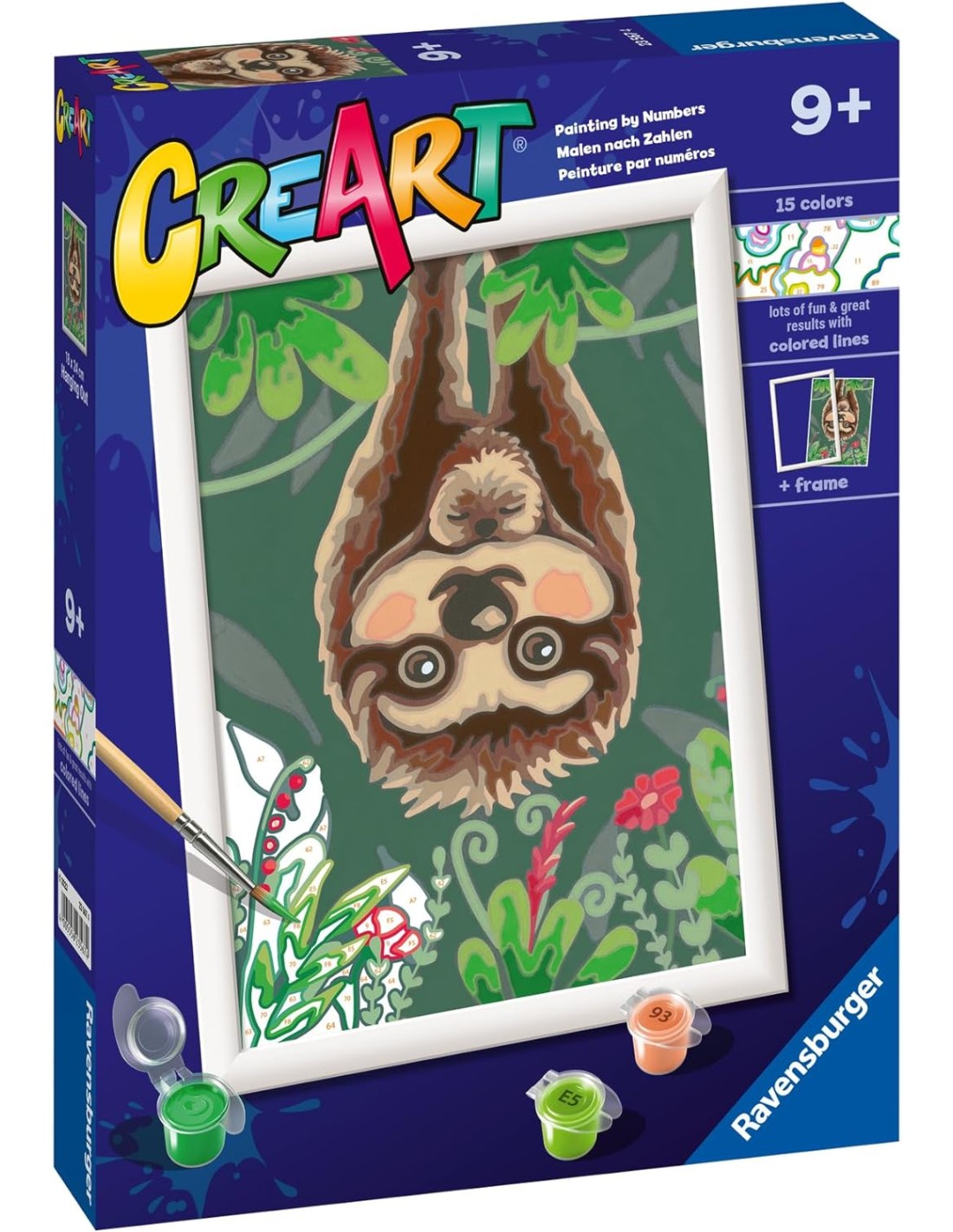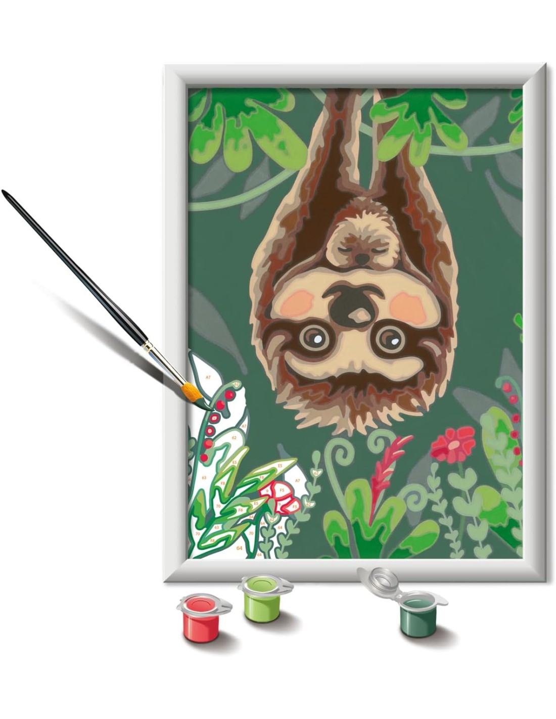 RAVENSBURGERRavensburger CreArt Serie D: Bradipo pigro, Kit per Dipingere con i Numeri, Contiene una Tavola Prestampata, Pennello, Colori e Accessori