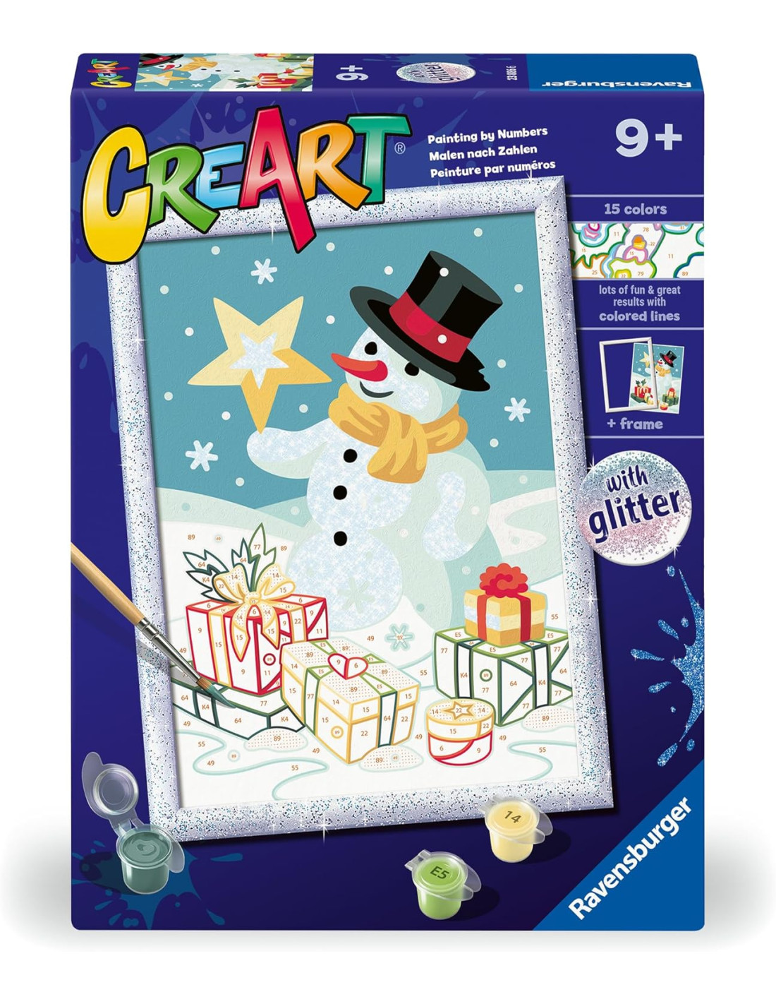 Ravensburger - CreArt Serie D, Pupazzo di Neve, Dipingere con i Numeri, Kit Pittura Bambini, Cornice Inclusa, Gioco Educativo, Idea Regalo Bambini 9+ Anni, 24x18 cm