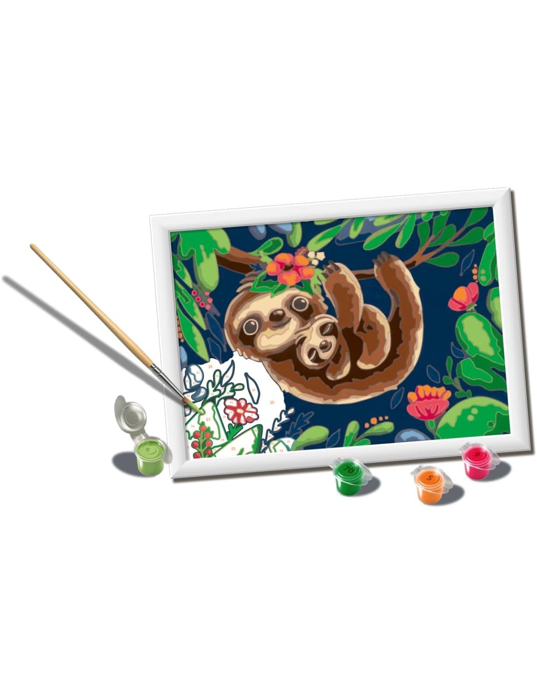 Ravensburger CreArt Serie D: Vita da bradipo, Kit per Dipingere con i Numeri, Contiene una Tavola Prestampata, Pennello, Colori e Accessori