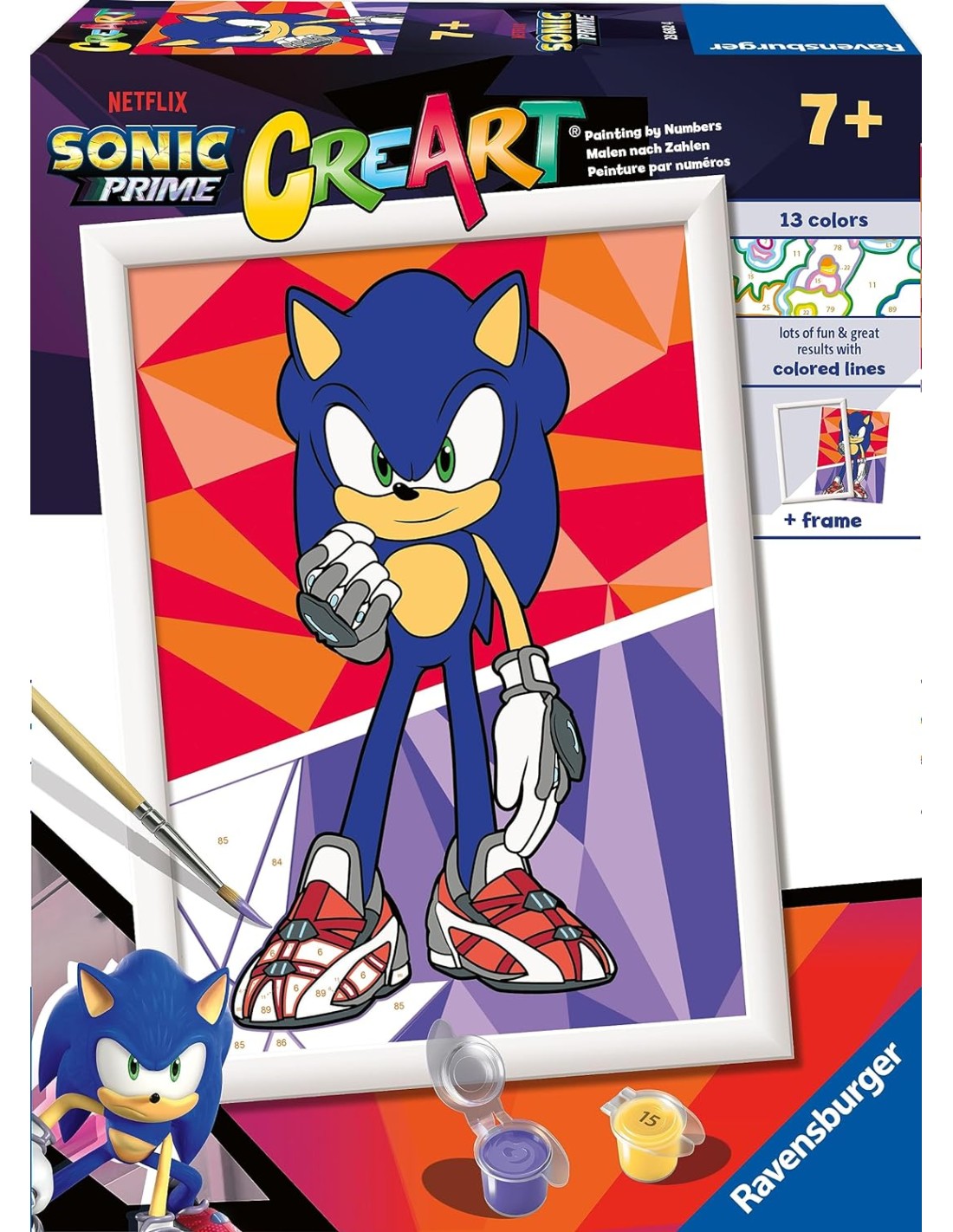 Ravensburger - CreArt Serie D: Sonic Prime - Il trio magico, Kit per Dipingere con i Numeri, Contiene una Tavola Prestampata, Pennello, Colori e Accessori