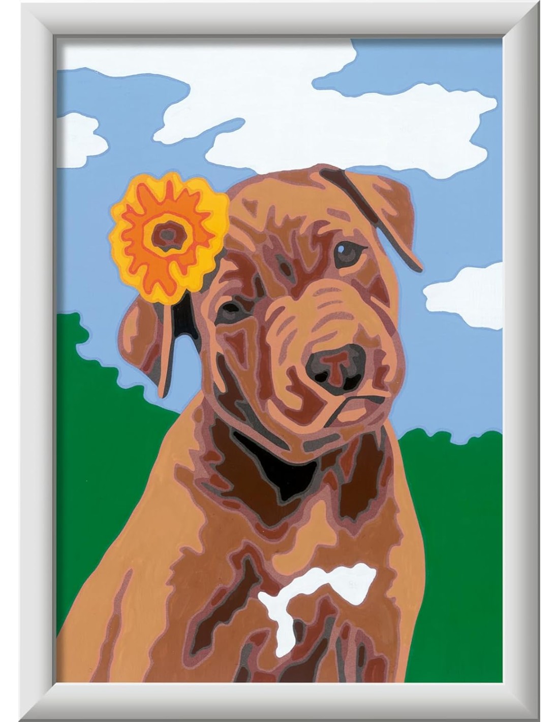 Ravensburger CreArt Serie E: Cucciolo con fiore, Kit per Dipingere con i Numeri, Contiene una Tavola Prestampata, Pennello, Colori e Accessori