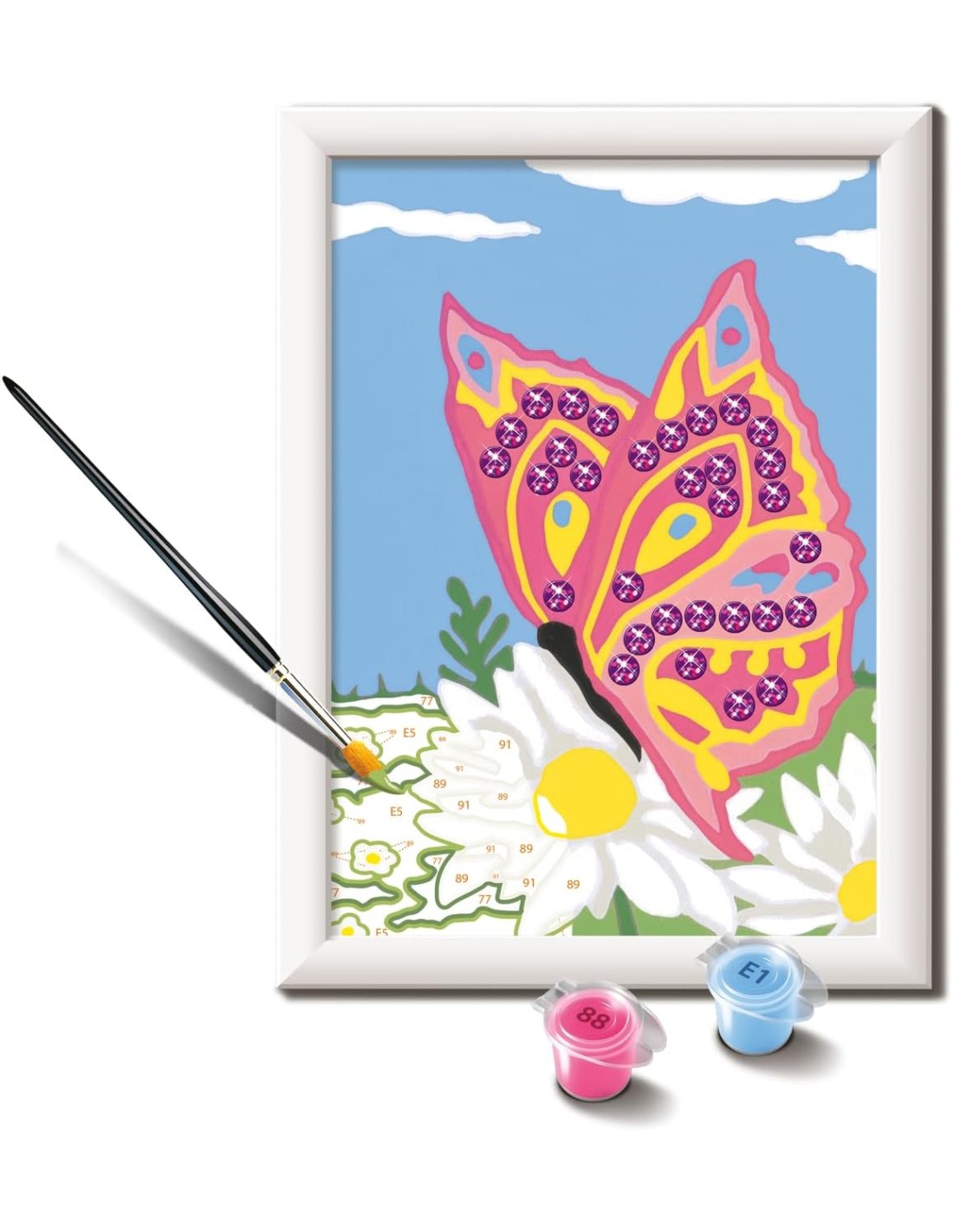 Ravensburger CreArt Serie E: Farfalla scintillante, Kit per Dipingere con i Numeri, Contiene una Tavola Prestampata, Pennello, Colori e Accessori