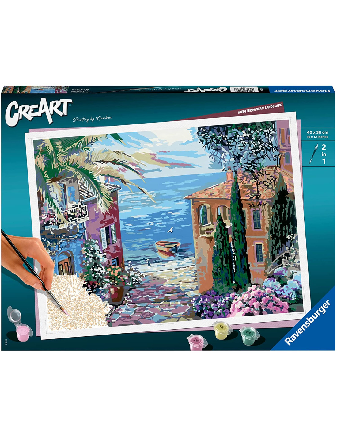 Tutti possono dipingere con CreArt, la tavola è già prestampata e contiene un tracciato che guida l'attività con numeri per riempire gli spazi con i corrispondenti colori I colori a base d'acqua sono pronti per l'uso e non necessitano alcun solvente, si richiudono facilmente in modo da poter completare il dipinto in qualsiasi momento, il kit contiene anche un pennello dalla doppia punta per dipingere gli spazi più grandi e più piccoli I barattoli di colori sono richiudibili singolarmente per evitare che si secchino, per facilitare l'attività, viene fornito una tavolozza di cartone dove inserire i barattolini per evitare che si rovescino Attività rilassante che esercita la manualità fine e la concentrazione e garantisce un risultato impeccabile, che da un grande senso di soddisfazione a tutti, è per scaricare lo stress dopo una giornata impegnativa, per avvicinarsi al mondo della pittura e per prendersi una pausa di relax CreArt, il kit di painting by numbers, che permette a tutti di dipingere ed ottenere risultati ottimi, scopri l'intera linea, immagini di città, animali e paesaggi per completare la tua collezione