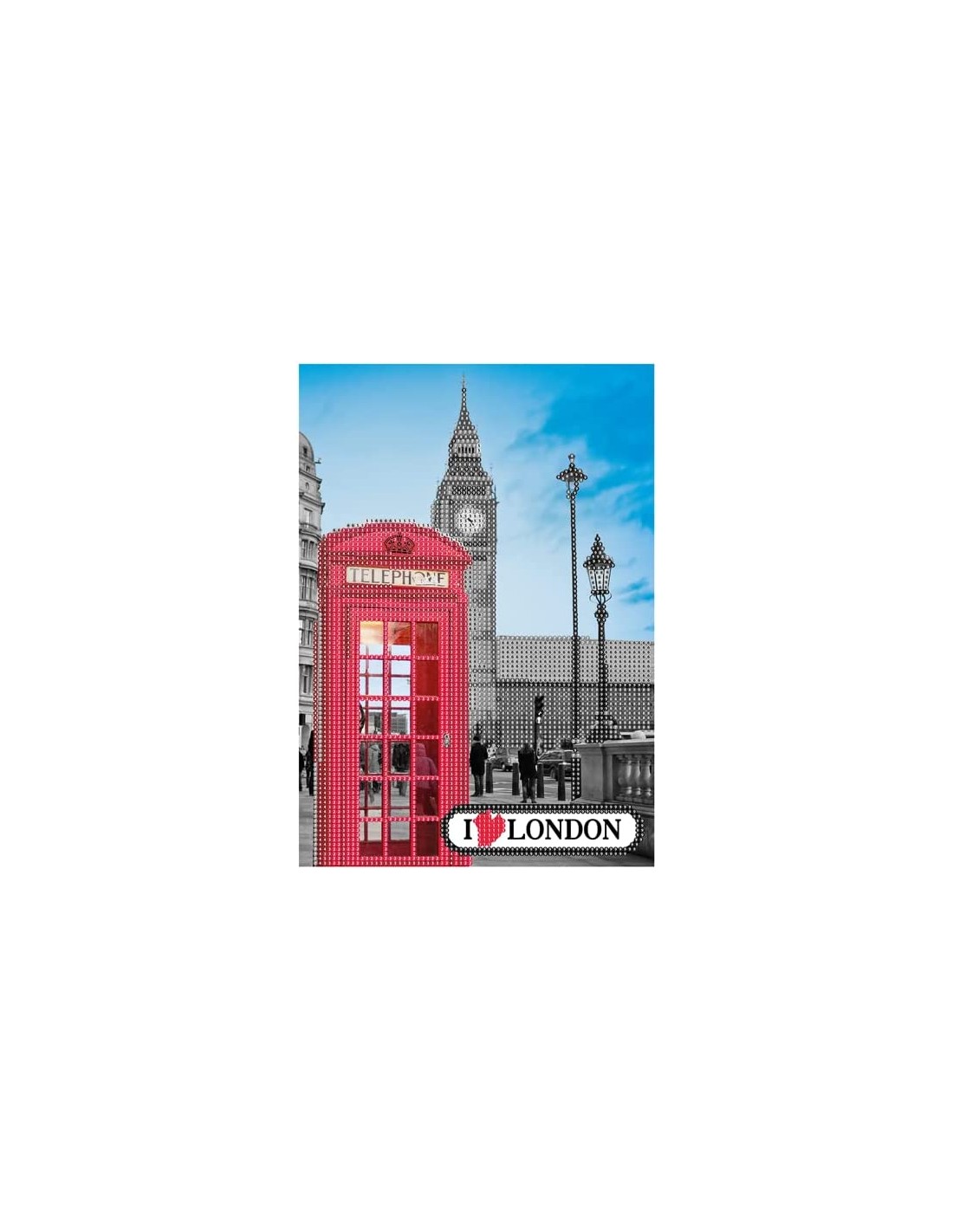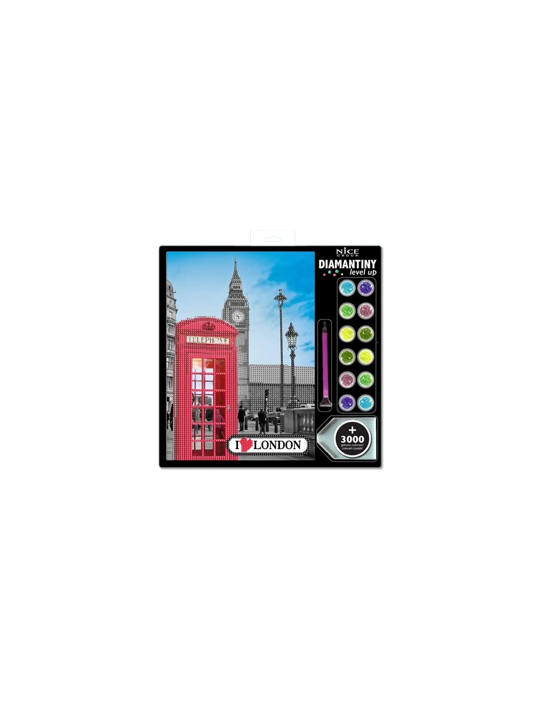 DIAMANTINY LEVEL UP: è l'attività crystal art per creare mosaici fai-da-te, in rilievo, con coloratissime gemme 3D. Disponibile nella versione CITY London da gemmare. TECNICA: per decorare il mosaico della Città di Londra devi utilizzare la tecnica "crystal art, colora con i numeri”, applicando le gemme ai numeri. Il foglio di istruzioni ti guida nell'applicazione. FUNZIONE: questa attività è molto semplice e rilassante. Aiuta i bambini e i giovani a sviluppare la manualità, la coordinazione e la concentrazione. CONTENUTO: il set contiene 1 quadretto di cm 21x29,5 con base adesiva e guida colore, 3000+ cristalli colorati, 1 vassoio raccoglitore, 1 penna con cui applicarli e 1 quadratino di cera. Età consigliata: 8+