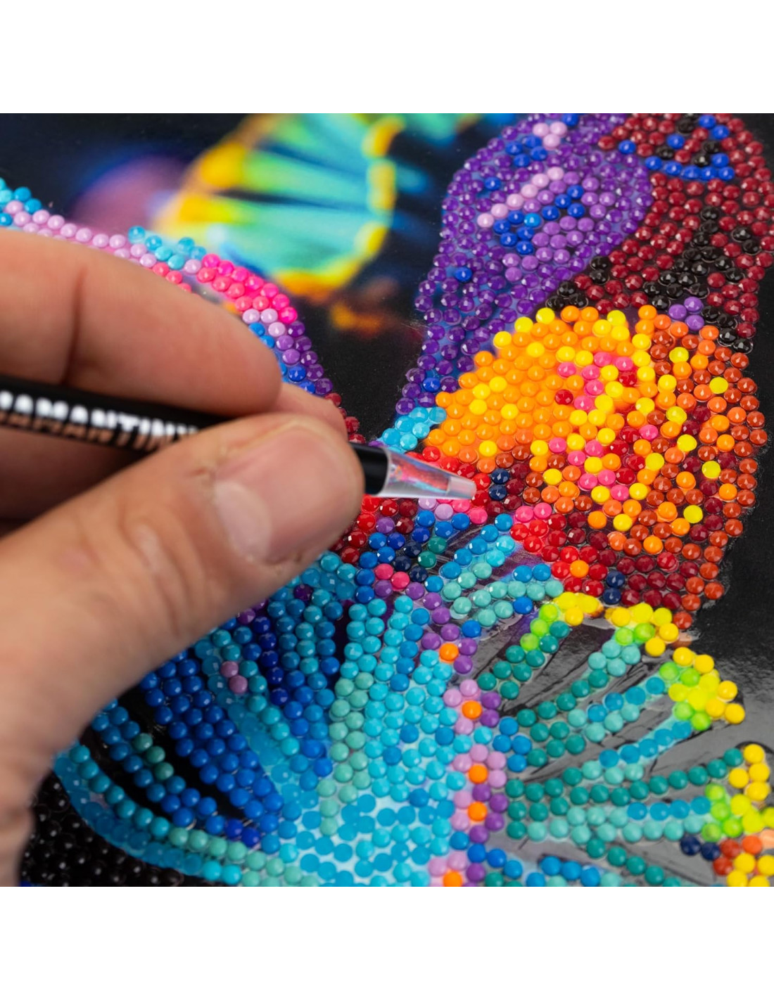 CONTENUTO: il set contiene 1 quadretto di cm 21 x 29,5 cm con base adesiva e guida colore, 3000+ cristalli colorati, 1 vassoio raccoglitore, 1 penna con cui applicarli e 1 quadratino di cera. Età consigliata: 8+
