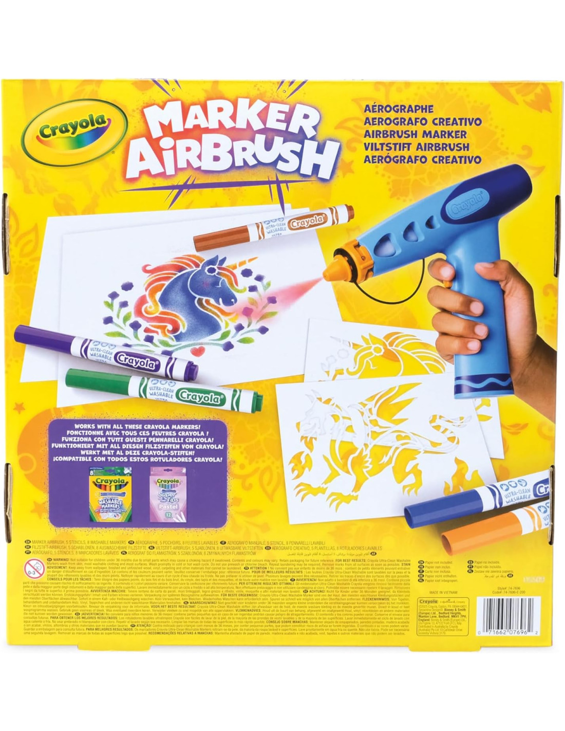 CRAYOLA Marker Airbrush – Aerografo Creativo per Bambini con 8 Pennarelli Lavabili e 5 Stencil