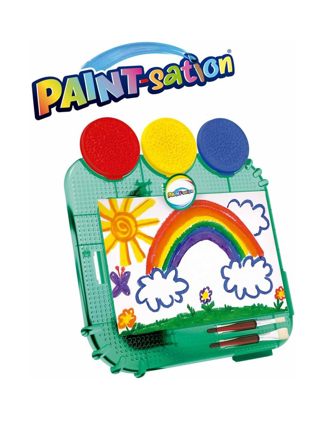 Disegna come un vero professionista, cavalletto per pittura, a misura bimbo, stabile e robusto, porta pennelli Pods di vernice e fogli, tutto a portata di mano per poter dare spazio alla fantsia e all'immaginazione. I Pods hanno ghiera filettata che contiene la vernice ed una compertura forata che permette la fuoriuscita del colore senza che questo coli o sbavi. La confezione contiene: 1 cavalletto da tavolo, 3 pods di vernice, 2 pennelli, 10 fogli di carta A4, supporto inclinabile, manuale di istruzioni Il gioco è adatto ai bambini dai 3 anni in su. Gioca senza limiti con la fantasia.