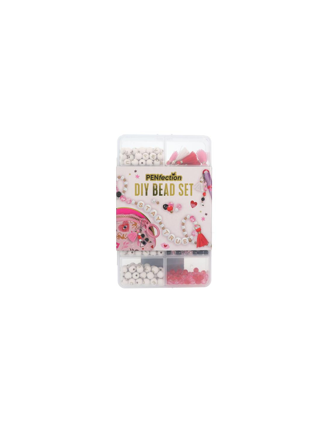 Con i set di perline PENfection puoi creare i tuoi ciondoli personali da attaccare per es. a molti astucci e penne PENfection. Nel box trasparente: 225 perline - lettera, molte perline colorate, 6 pompon (pink/rosso/rosa) e 3 nastri (crema, nero, rosa; ognuno 1,5 m)