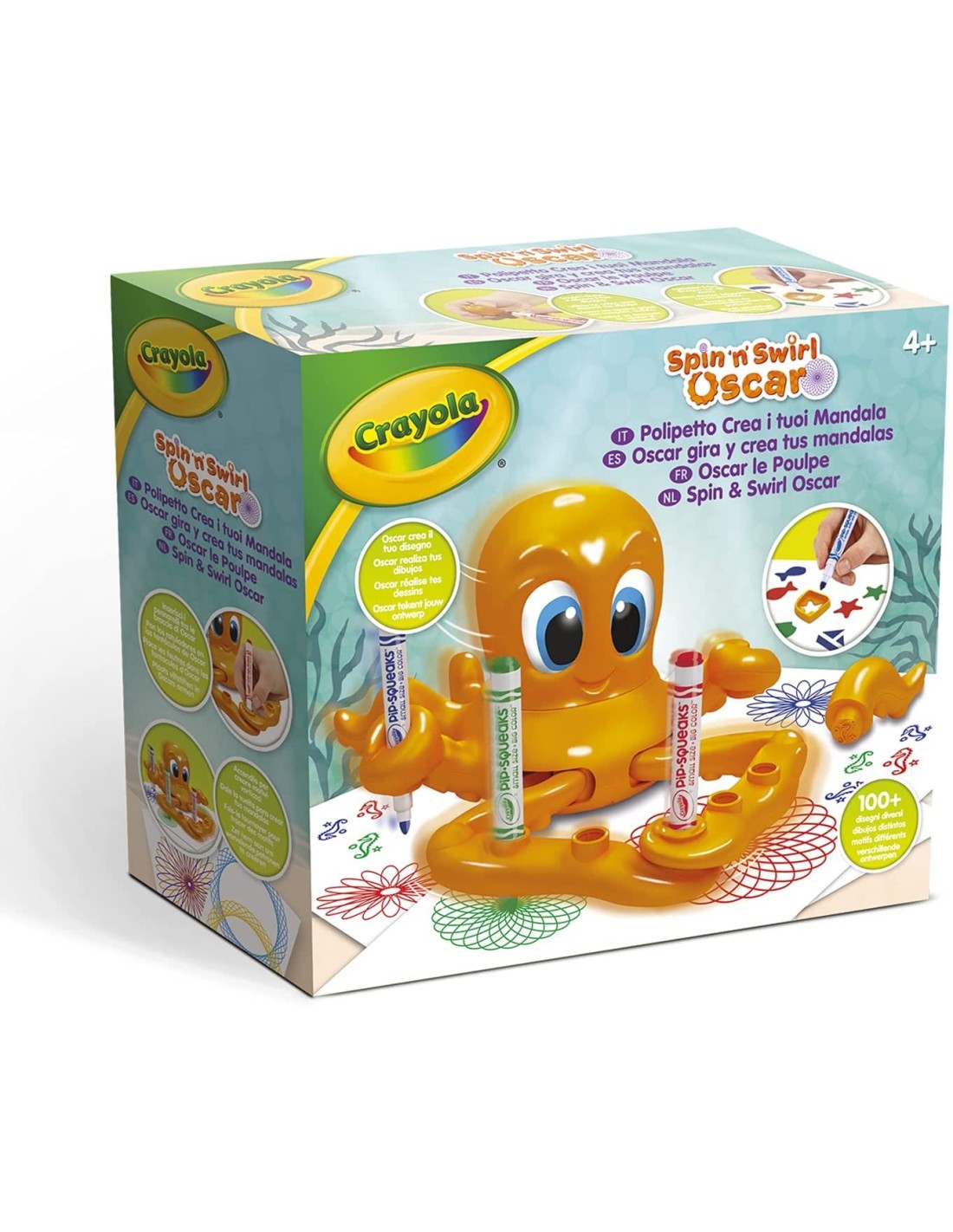 OSCAR IL POLIPETTO: divertente gioco attività per creare coloratissimi mandala e decorarli con gli stencil e stampini inclusi FACILE E DIVERTENTE: basta inserire un pennarello tra i tentacoli di Oscar e, una volta azionato, creerà originali motivi, vortici e mandala tutto da solo! SCOPRI LE SORPRESE: i tentacoli diventano degli stampini e stencil da utilizzare per arricchire i disegni REGALO CREATIVO: ottimo come regalo di compleanno o altre occasioni speciali, per bambini e bambine, da 4 anni Funziona con 2 pile AA (non incluse)