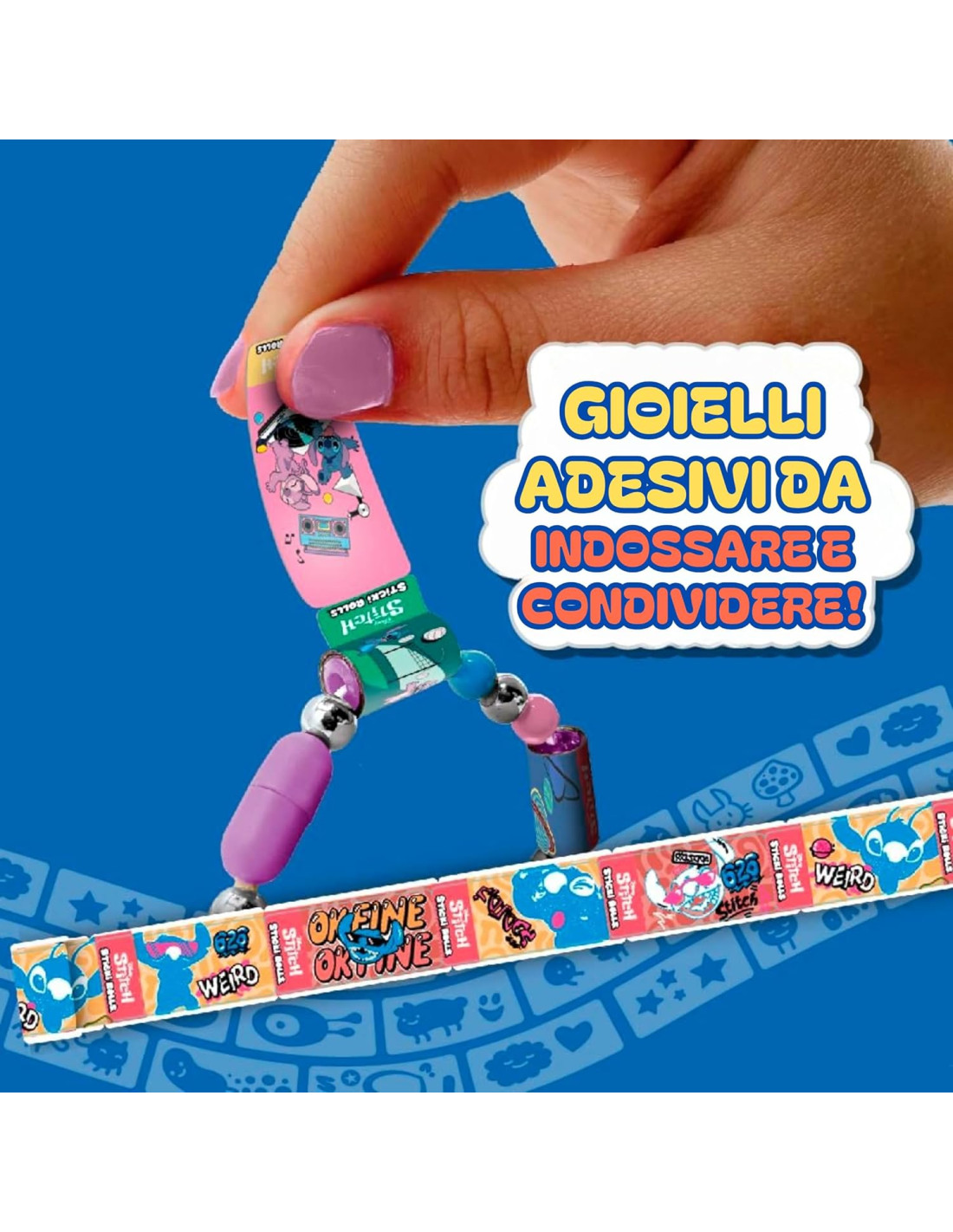 EDIZIONE SPECIALE STITCH: il set comprende un braccialetto e una collana bambina con un ciondolo Sticki a forma di adesivi bambina di Stitch. Tanti accessori Sticki Rolls per portare Stitch con te ovunque tu vada.