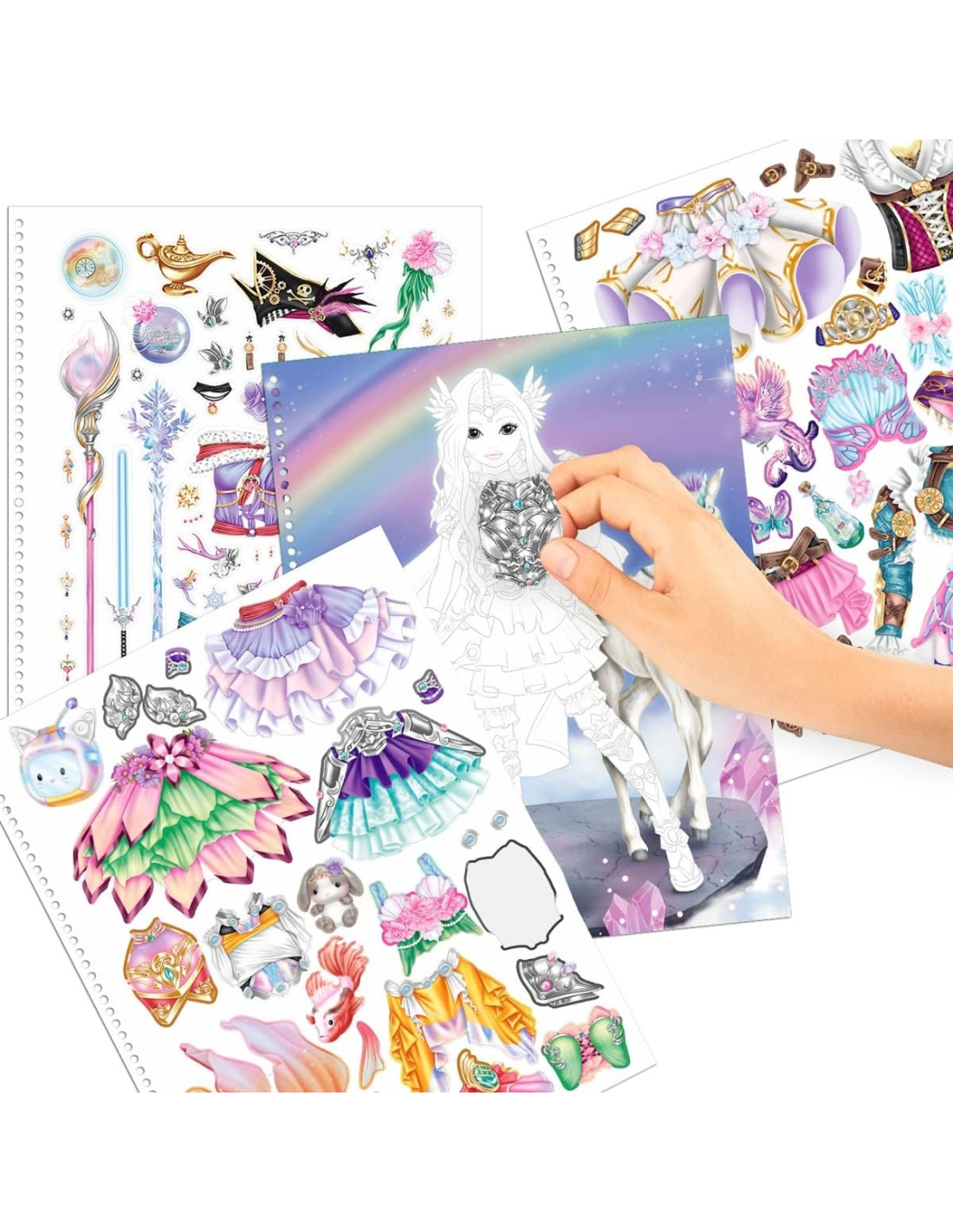 Crea Il Tuo TOPModel-Libro Fantasy con 78 Pagine per Creare Abiti magici, Libretto da colorare con Foglio di Adesivi e Stencil