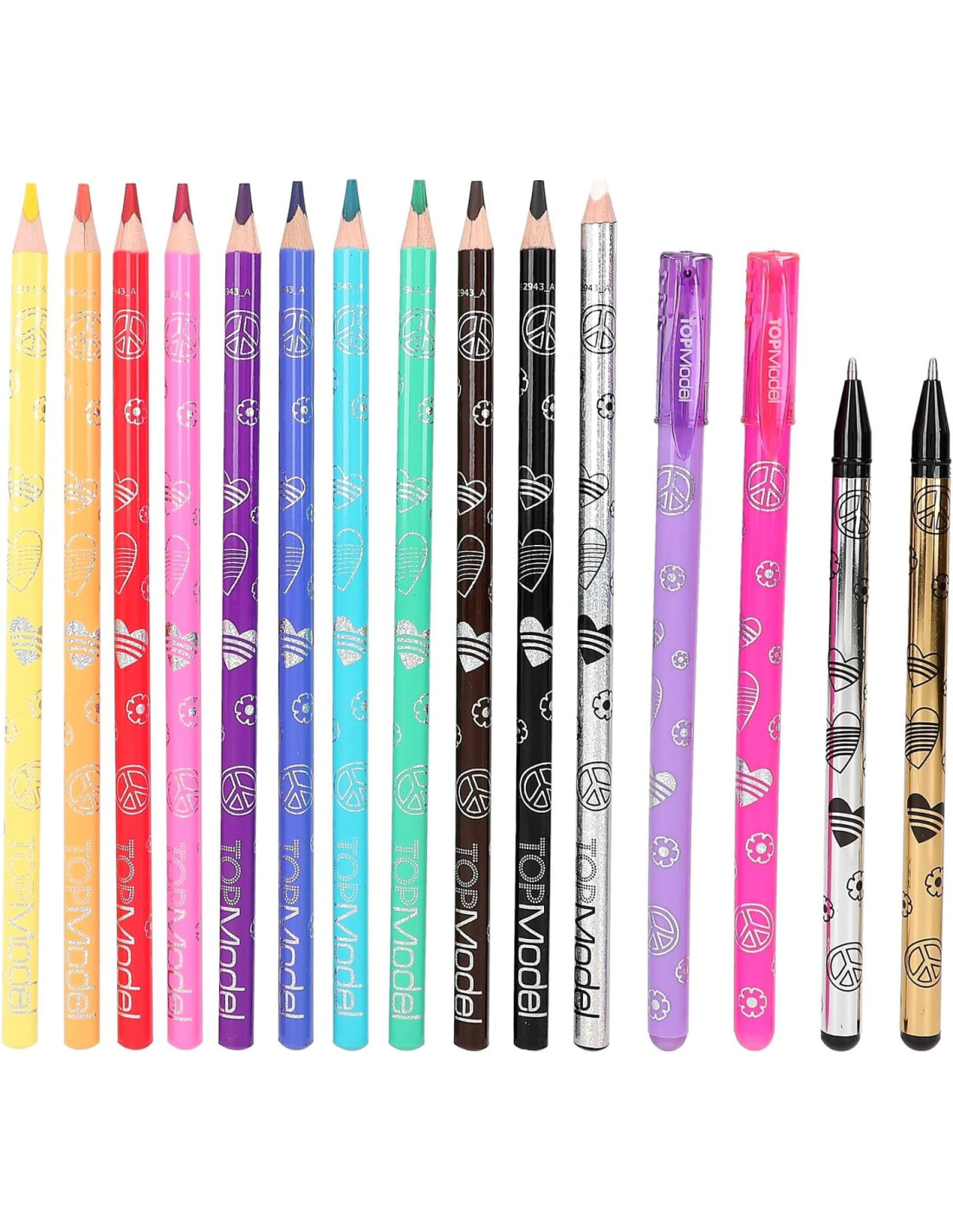 TOPModel-Set di Libri 76 Pagine per disegnare Motivi, Incluso Modello da colorare, Foglio di Adesivi, Penne e Molto Altro