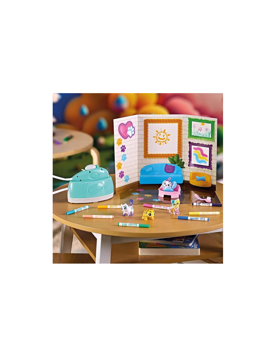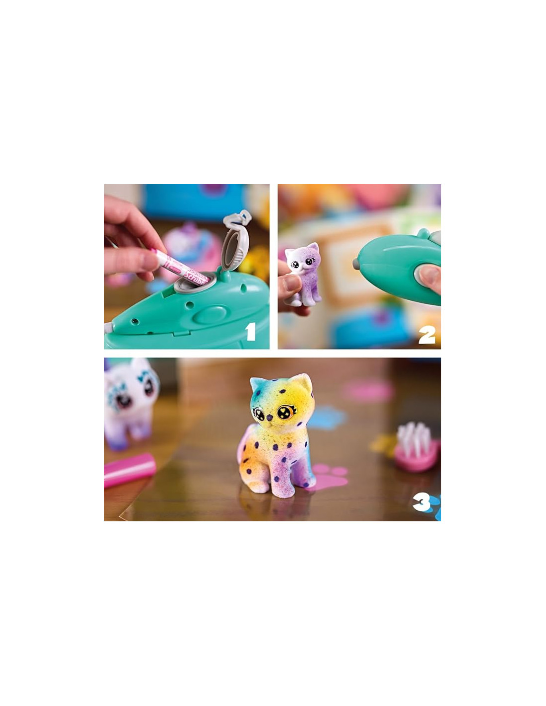 FACILE E DIVERTENTE: posiziona il cucciolo sulla poltroncina come in una vera boutique e nebulizza il colore con l'erogatore semplicemente inserendo il pennarello nell'apposito vano. Include 3 mascherine stencil per diverse tecniche di personalizzazione oltre a un tappetino di gioco, uno sfondo e 8 pennarelli