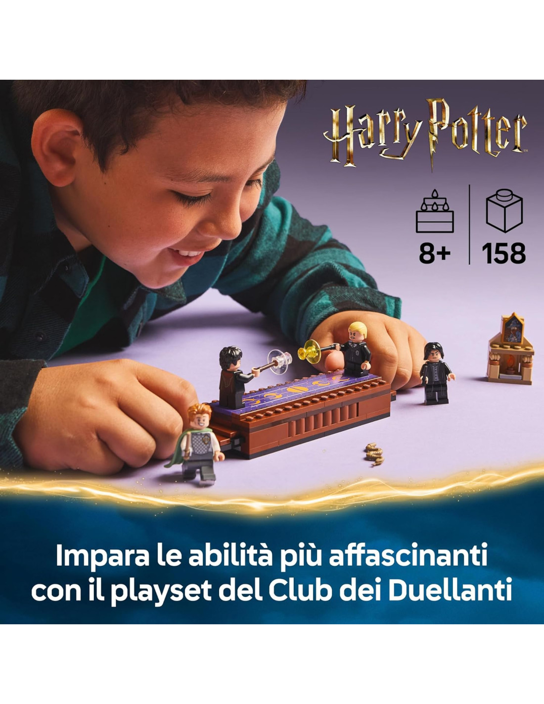 Gioco magico per bambini e bambine da 8 anni in su: rivivi la classica scena del duello in Harry Potter nel film la Camera dei Segreti in cui Harry impara a usare la magia, con il giocattolo Castello di Hogwarts Club dei Duellanti LEGO Harry Potter 4 personaggiLEGO Harry Potter: sono comprese le minifigure di Harry Potter e Draco Malfoy, ciascuna con una bacchetta magica ed elementi di incantesimi, oltre alle minifigure di Gilderoy Lockhart e Severus Piton per tanti giochi di magiaSet di giochi LEGO d'avventura: questo set con una parte della scuola di Hary Potter da costruire, include una piattaforma da battaglia con funzione di ribaltamento (premi i gradini alle due estremità per far cadere l'avversario), e un caminetto 1 dei 14 ritratti LEGO Harry Potter di Hogwarts da collezione: questo set con il duello di Hogwarts di Harry Potter LEGO, include 1 dei 14 ritratti casuali di Hogwarts da esporre sopra il caminettoIdea regalo Harry Potter per bambini dagli 8 anni in su: questo gioco da battaglia è un divertente regalo per tutte le occasioni per bambini, bambine e chiunque stia scoprendo la magia e i giochi del Mondo Magico Istruzioni intuitive: l'app LEGO Builder offre ai bambini strumenti interattivi che consentono loro di ingrandire e ruotare i modelli in 3D, salvare i set LEGO Harry Potter e monitorare i loro progressi