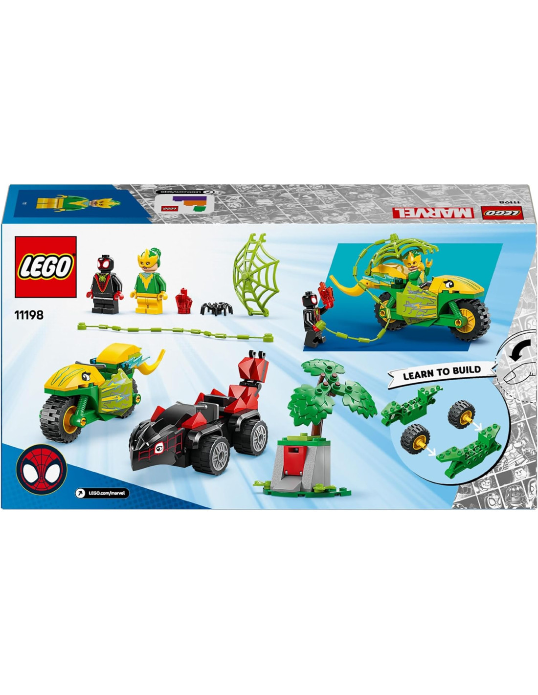 LEGOLEGO Spidey e i Suoi Fantastici Amici Inseguimento sui Dino-Veicoli di Spin ed Electro, Giochi Educativi e di Ruolo per Bambini e Bambine da 4 Anni da Supereroe con Macchina e Moto Giocattolo 11198