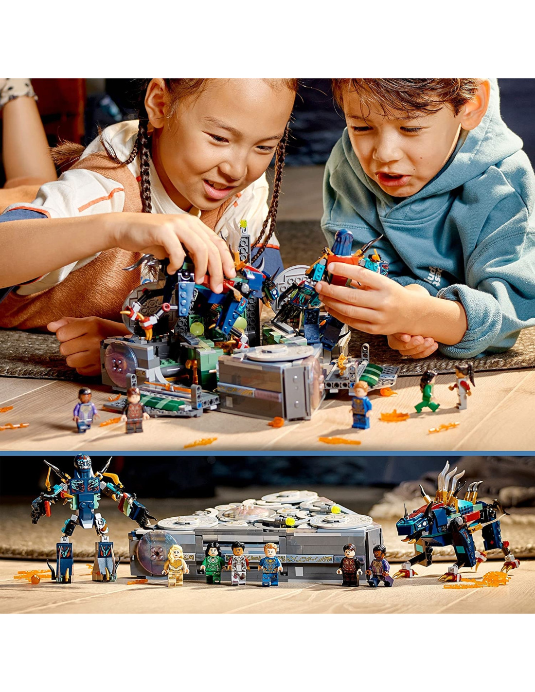 LEGOIl set da costruzione LEGO Marvel L'Ascesa di Domo comprende l'astronave degli Eterni, con 3 lati apribili per esplorare gli interni All'interno di questa navicella spaziale i bambini troveranno la cabina di pilotaggio, un'armeria e un laboratorio super tecnologico I bambini potranno inserire le minifigure nel sedile del pilota e iniziare un'entusiasmante battaglia contro i Devianti Contiene 6 minifigure LEGO, Makkari, Ikaris, Thena, Sersi, Druig e Phastos, e 2 Devianti, tra cui Kro, il leader Questo set è l'unico che include Druig e Phastos, un'idea regalo per Natale perfetta per i piccoli appassionati del mondo LEGO Quest'astronave include istruzioni semplici da seguire che aiuteranno anche i più piccoli a costruirla in poco tempo I bambini possono combinare il set con altri set LEGO Marvel sugli Eterni, per completare la serie