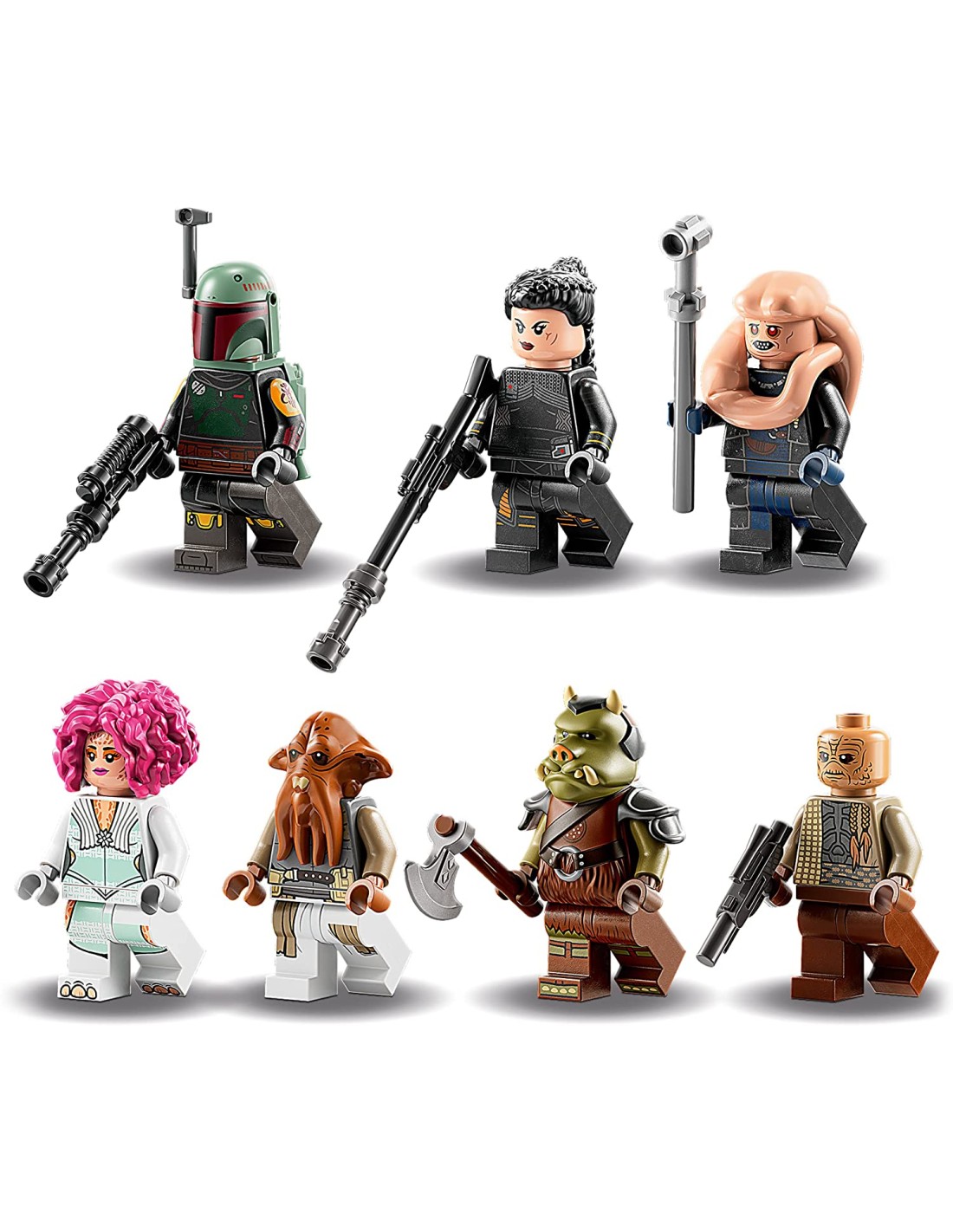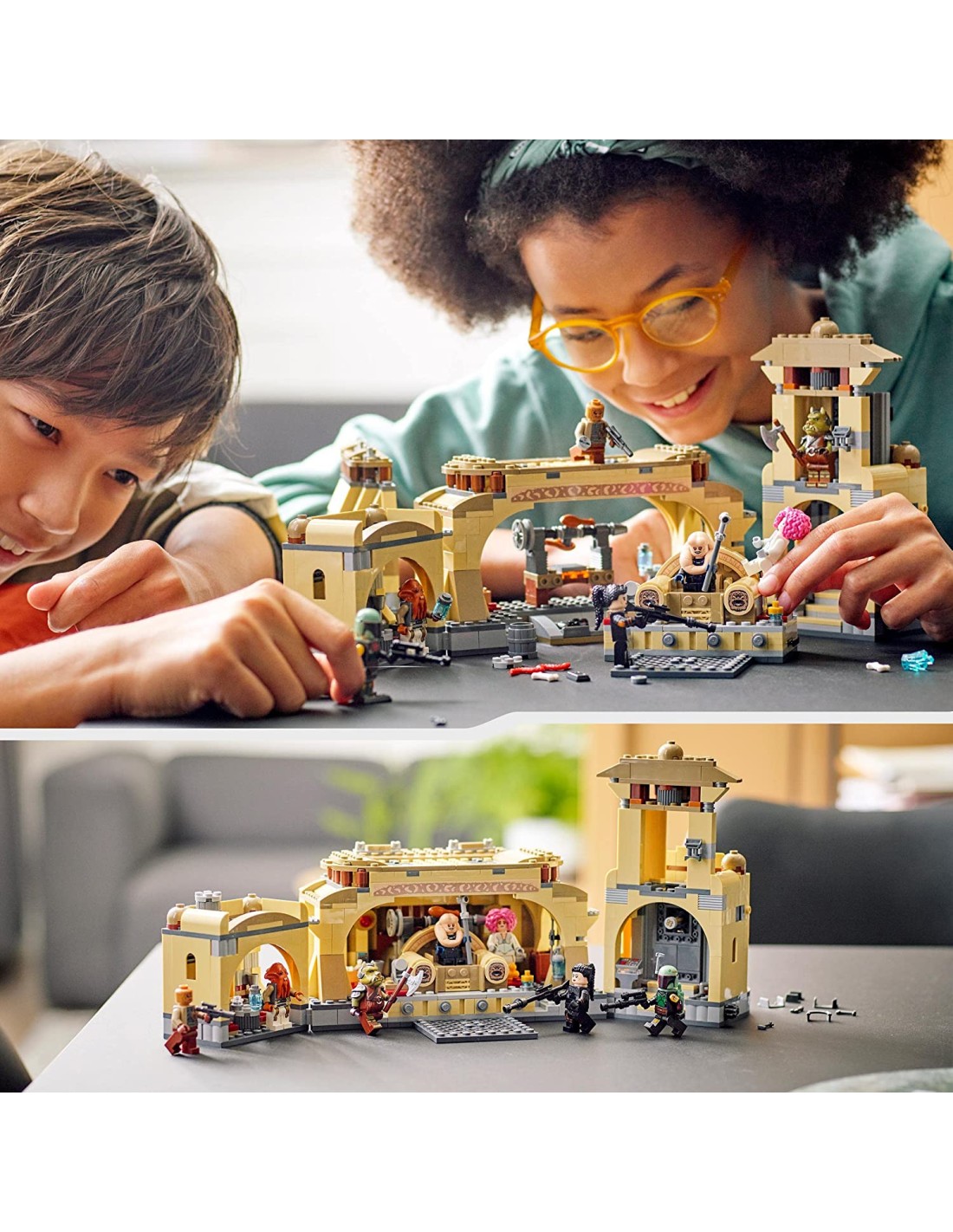 Consegnato in una confezione libera da frustrazioni, facile da aprire e realizzata con materiali riciclabili al 100% Con il set Star Wars LEGO La Sala del Trono di Boba Fett, tutti i fan possono ricreare i dettagli unici della sala del trono e di altre parti del palazzo di Jabba Il trono è dotato di una funzione pop-up per espellere la minifigure di Bib Fortuna; c'è anche una camera segreta per nascondere le armi e i lingotti beskar Il set di giocattoli Star Wars LEGO include gradini ribaltabili per rovesciare la guardia, un cancello che si apre e molto altro ancora! Spiega la parte anteriore e apri la parte posteriore per rivelare una cucina e un'area barbecue con girarrosto, oltre ad altri divertenti accessori Include 7 minifigure LEGO Star Wars: Boba Fett, Fennec Shand, Bib Fortuna, una danzatrice Theelin, una guardia Weequay, una guardia Gamorreana e un Quarren Questo set di giochi per bambini dai 9 anni in su è un'ottima idea regalo di compleanno o per un'occasione speciale, per tutti gli appassionati di Star Wars The Book of Boba Fett I set di costruzioni LEGO Star Wars per bambini consentono di riprodurre scene indimenticabili, inventare nuove avventure e stimolano l'immaginazione