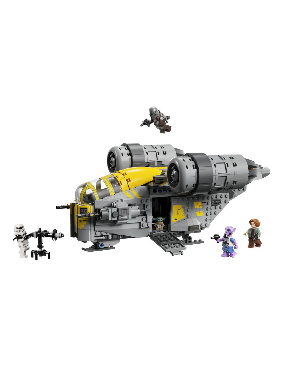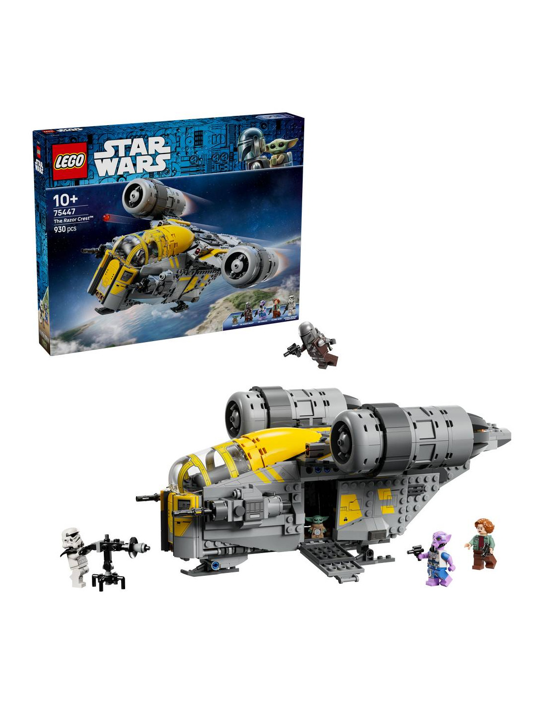 Lanciati in battaglie ricche di azione con il giocattolo costruibile LEGO® Star Wars™ The Razor Crest™ (75447) per bambini. Ricrea l'iconica astronave con lo stesso design e la straordinaria combinazione di colori di Star Wars: The Mandalorian and Grogu™. Questo veicolo di Star Wars è facilmente accessibile per giocare con le minifigure LEGO di The Mandalorian, del Colonnello Ward, di Zeb Orrelios e dello Stormtrooper Imperial Remnant e con il personaggio LEGO di Grogu. Solleva il tettuccio della cabina di pilotaggio, apri i pannelli laterali per accedere al vano motore e al vano di carico e abbassa le rampe di atterraggio. Un regalo perfetto per bambini, bambine e tutti i fan di Star Wars: The Mandalorian and Grogu dai 10 anni in su, questo set da costruzione include anche il blaster Sentry E-Web dello Stormtrooper, il jetpack di The Mandalorian e altri accessori per ispirare il gioco creativo. I bambini possono costruire con sicurezza utilizzando l'app LEGO Builder: ingrandisci, ruota in 3D e monitora i progressi con istruzioni digitali facili da seguire. Il set contiene 930 pezzi.