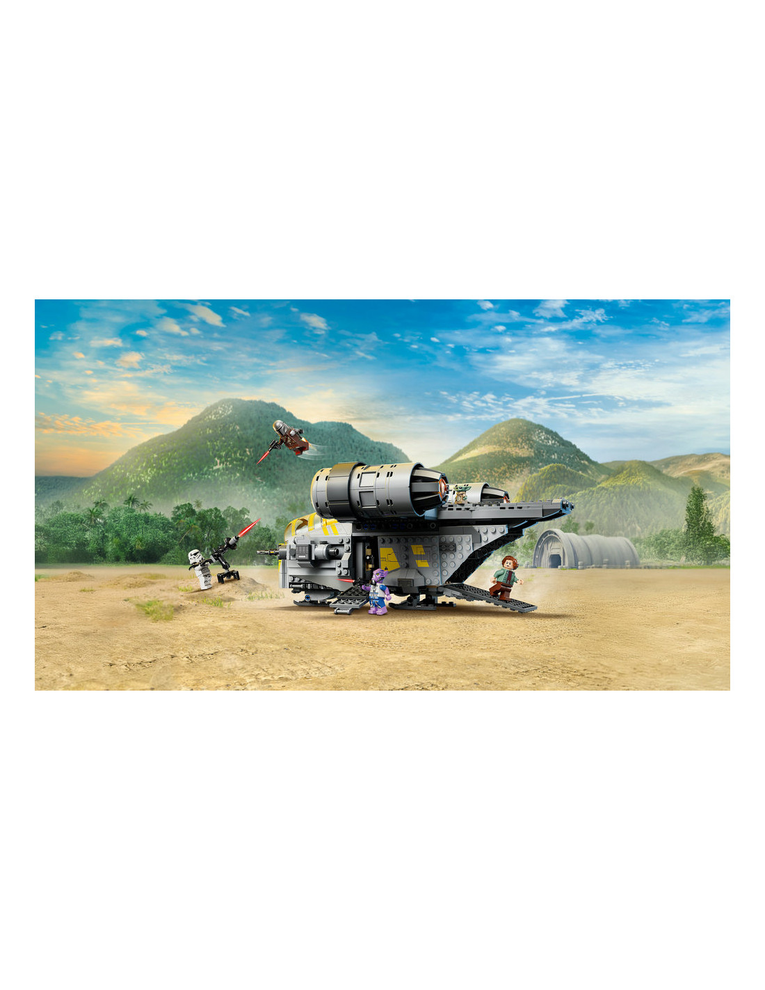 Lanciati nell'azione di battaglia con un fantastico modello di The Razor Crest con mattoncini spara-bottoncini LEGO®, proprio come in Star Wars: The Mandalorian e Grogu™.
