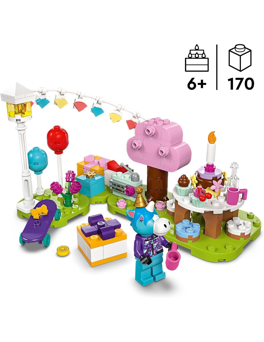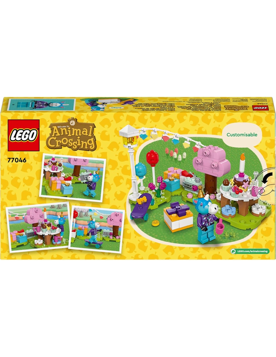 I bambini creativi dai 6 anni in su si divertiranno un mondo a ricreare scene di gioco di ruolo delle loro serie di videogiochi preferite con il giocattolo Festa di compleanno di Giuliano LEGO Animal Crossing (77046). Questo giocattolo personalizzabile è ricco di graziosi accessori che i bambini riconosceranno dalla serie di videogiochi e che stimoleranno una narrazione divertente e senza limiti. I bambini organizzano una festa per Giuliano, un cavallo, che i bambini e le bambine riconosceranno dalla serie di videogiochi. Gli fanno un regalo che include un microfono e una stellina moneta e condividono le cupcake mentre Giuliano spegne la candelina sulla sua torta di compleanno. Una volta terminati i festeggiamenti, i bambini ricostruiscono la scena costruibile, spostando le basi e riorganizzando i palloncini giocattolo, le decorazioni e gli accessori. Metti tutto il divertimento personalizzabile della serie di videogiochi Animal Crossing nelle mani dei bambini. Una fantastica idea regalo per il compleanno per i fan di Giuliano, questo set modulare può essere aggiunto ad altri set di costruzione creativi LEGO Animal Crossing per creare possibilità di gioco illimitate.