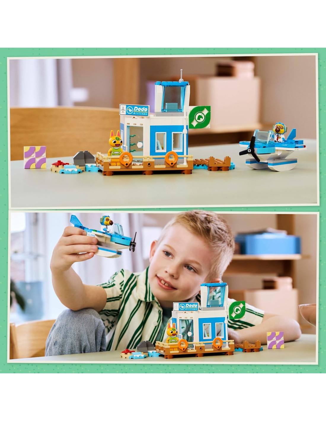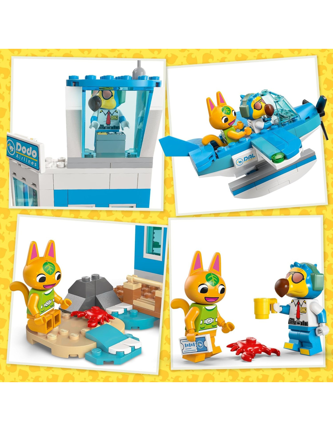 Lascia che l'immaginazione dei piccoli aviatori decolli con il set In Volo con la Dodo Airlines (77051) LEGO Animal Crossing, un gioco per bambine e bambini da 7 anni in su con cui realizzare un aeroporto e un aereo passeggeri giocattolo ricchi di dettagli. I piccoli salgono a bordo dell'idrovolante giocattolo LEGO per esplorare una nuova isola, proprio come farebbero nel videogioco Animal Crossing. Questo set di giochi artistici, pieno di funzionalità, permette di dar vita a storie avvincenti grazie ad un aeroporto giocattolo dotato di molo che conduce alla spiaggia, ad una torre di controllo e ad un gate arancione apribile. I piccoli possono utilizzare il biglietto per salire a bordo dell'aeroplano giocattolo pronti per il prossimo viaggio; possono inoltre far girare l'elica dell'idrovolante giocattolo e far salire a bordo le minifigure dei personaggi Animal Crossing del pilota Dodoardo e di Arancina. Un divertente regalo a tema Animal Crossing che farà falici i fan e tutti gli amanti delle costruzioni LEGO. Questo costruttivo gioco da spiaggia è presente nell'app LEGO Builder, uno strumento digitale per bambini con cui ingrandire e ruotare i modelli in 3D e con cui trovare idee per personalizzare la bandiera dell'aeroporto. I set di gioco LEGO Animal Crossing mettono il divertimento creativo della serie di videogiochi, direttamente nelle mani dei piccoli.