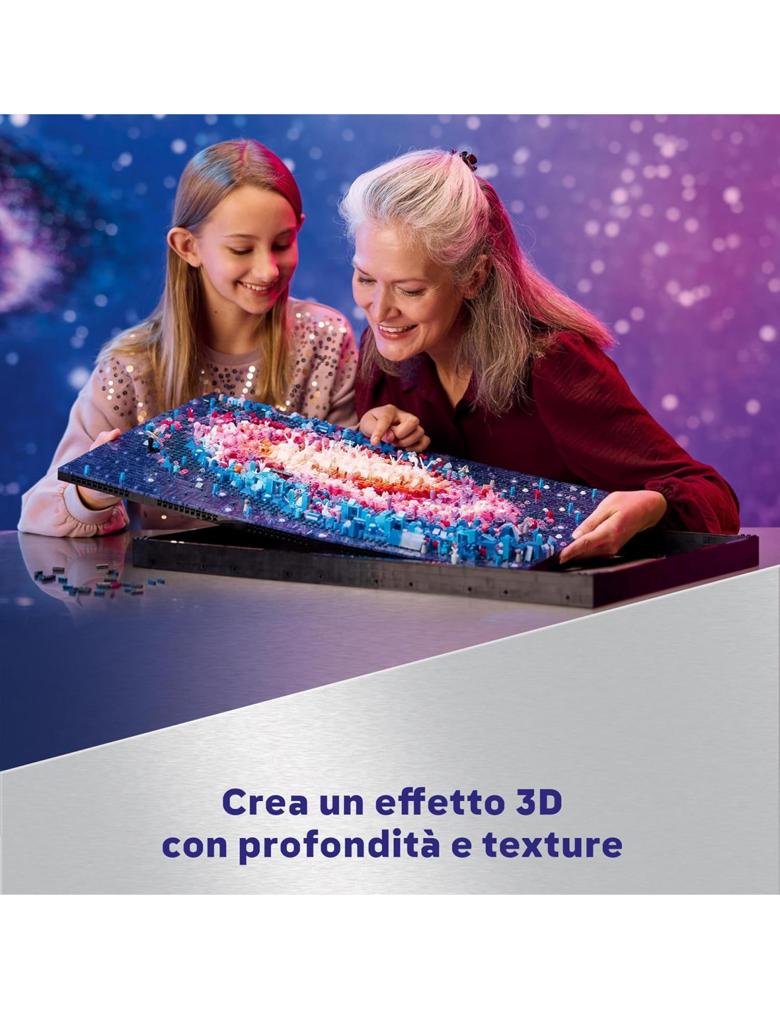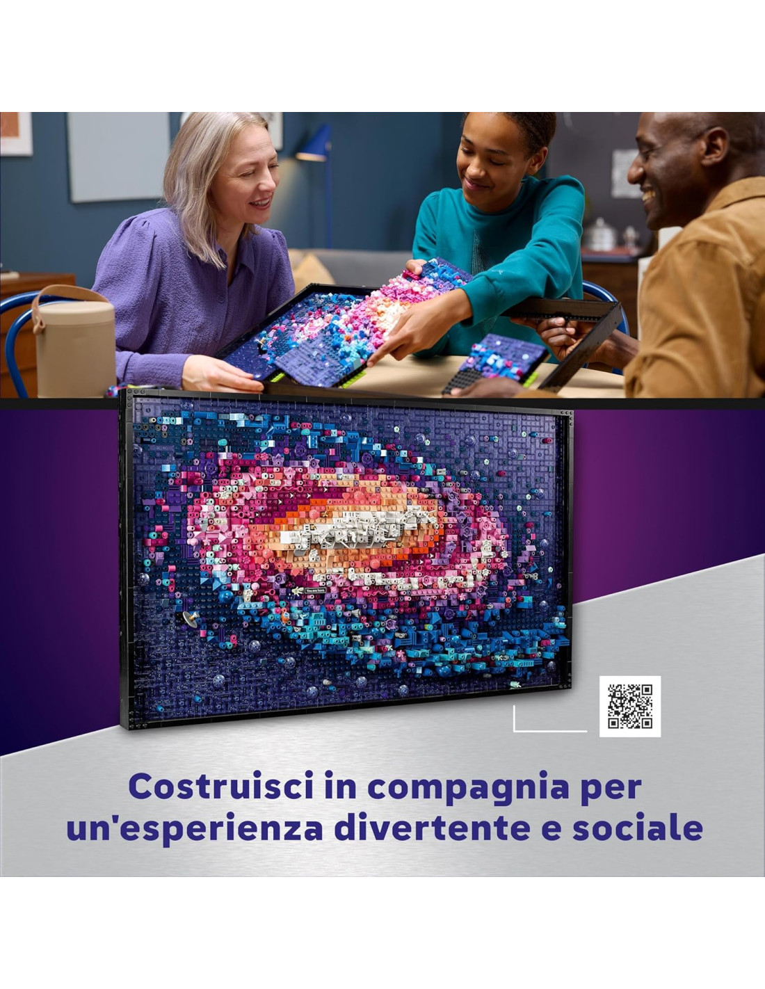 Arte murale con Via Lattea e Galassia: preparati a creare un grande quadro LEGO per adulti, con il kit di modellismo da costruire LEGO Art della Via Lattea Decorazione murale da parete con effetto 3D LEGO: questa costruzione creativa per adulti, formata da 3.091 mattoncini e pezzi LEGO stratificati, offre un effetto 3D ricco di profondità e texture Hobby creativo per adulti pieno di riferimenti: le decorazioni murali includono stelle, ammassi e altri famosi punti di riferimento della Via Lattea, tra cui Trappist-1, Le Pleiadi, La Nebulosa Granchio e i Pilastri della Creazione Idea regalo creativa: un set artistico ottimo come idea regalo LEGO per adulti a tema spazio, per il compleanno di lui o di lei, e per gli appassionati di astronomia e di attività creative Ascolta e impara: questa costruzione LEGO offre libretti con codice QR da scansionare, che consentono di scoprire di più sulla Via Lattea attraverso la colonna sonora appositamente realizzata per il set Un'esperienza di costruzione sociale: questa decorazione per la casa contiene 5 pannelli diversi, ciascuno con il proprio libretto di istruzioni per la costruzione, per offrire la possibilità di costruire e creare insieme agli amici