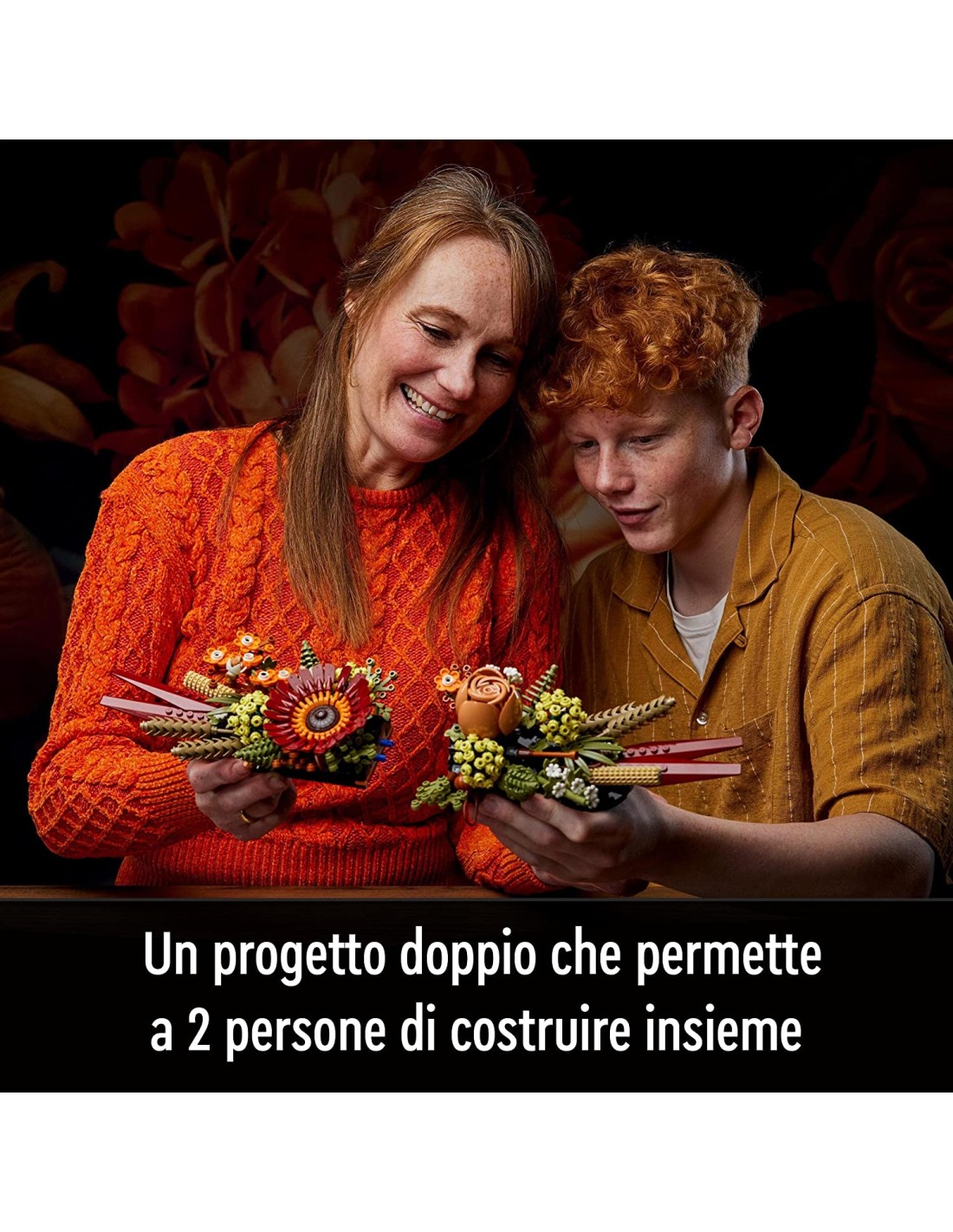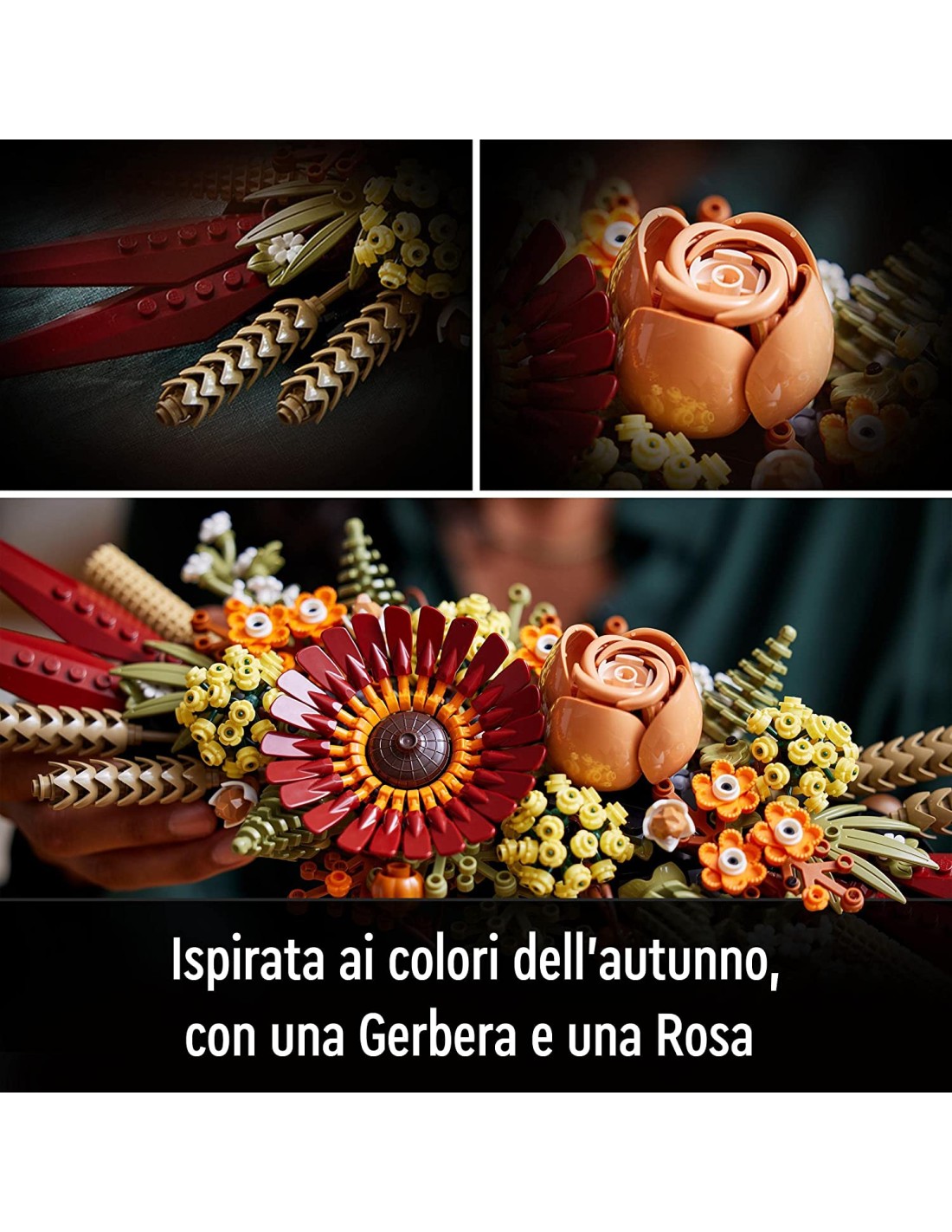 Il set di costruzioni LEGO Icons Centrotavola di Fiori Secchi, propone una vivace composizione floreale ispirata ai colori dell'autunno, da utilizzare come centrotavola o appeso alla parete come decorazione di casa