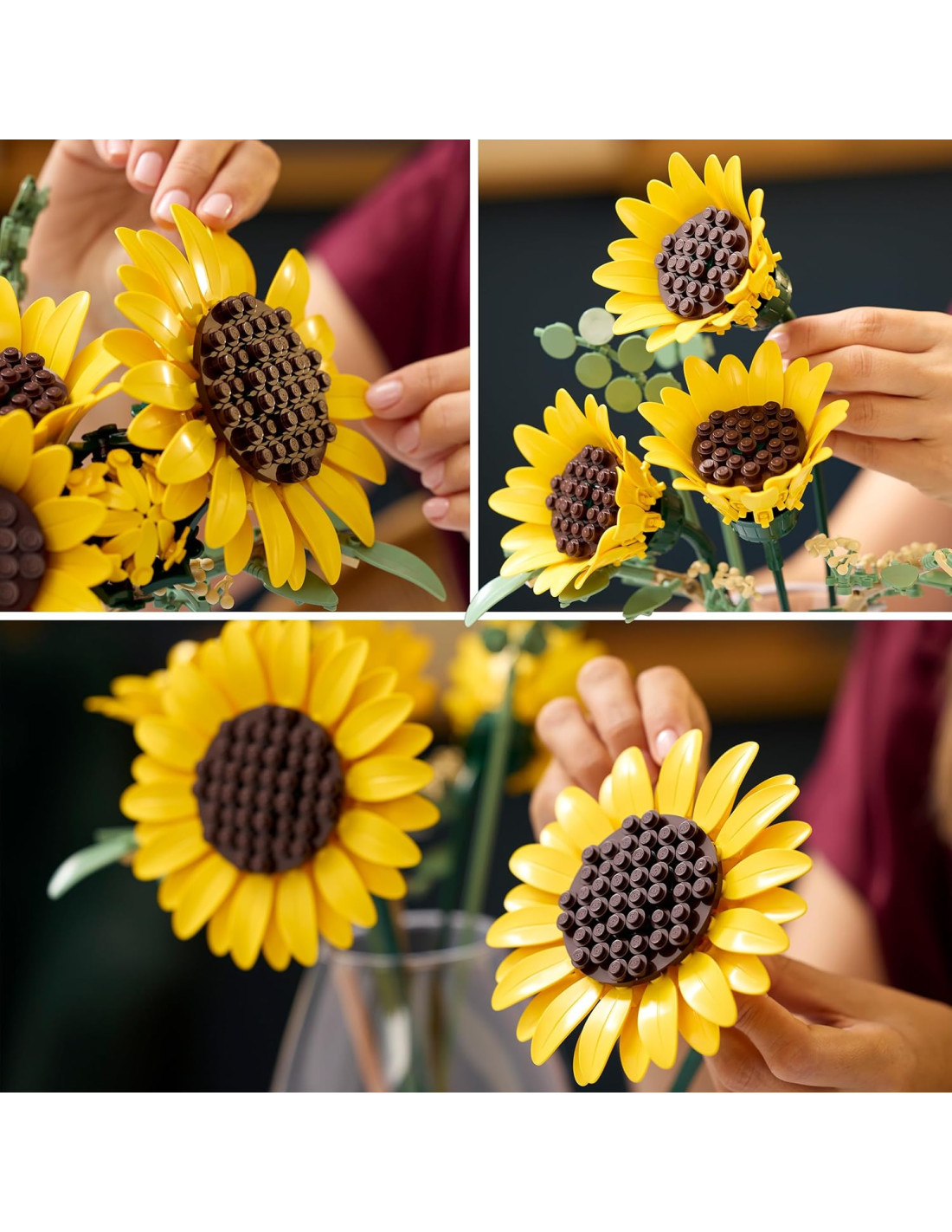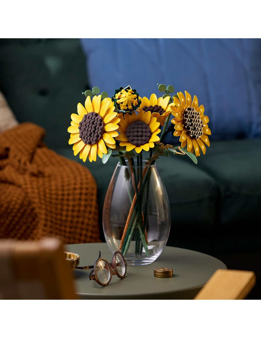 LEGO Botanicals Bouquet di Girasoli - Set di Fiori Artificiali per Adulti - Girasoli Finti e Steli di Eucalipto per Decorare il Soggiorno o la Camera da Letto