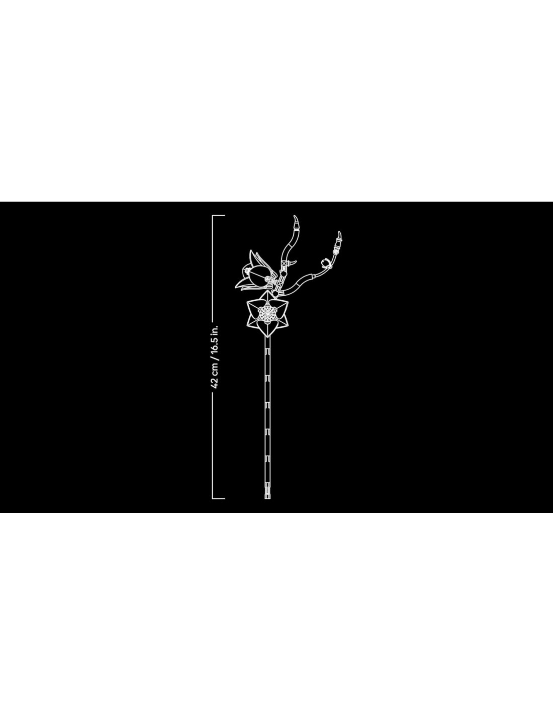 PIANTA DI MAGNOLIA LEGO: il kit comprende 5 rametti di magnolia, 2 dei quali mostrano il pieno sviluppo del fiore finto LEGO, dal piccolo bocciolo ai petali aperti