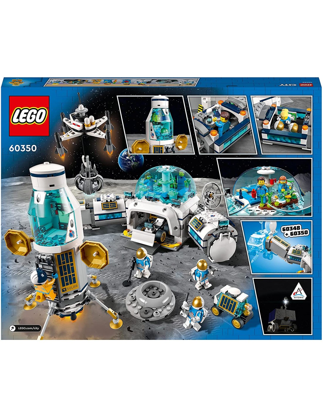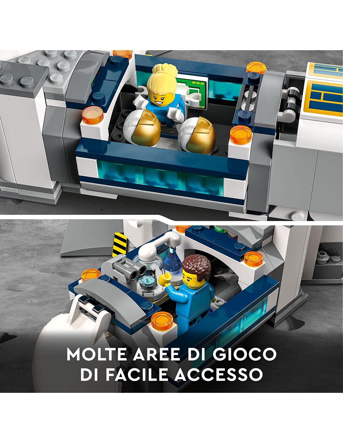 Consegnato in una confezione libera da frustrazioni, facile da aprire e realizzata con materiali riciclabili al 100% Questo set LEGO Space include una base di ricerca lunare con cupola, un modello di rover VIPER, un lander lunare, un drone skycrane e un buggy lunare La base di ricerca lunare è ispirata ai moduli NASA ed è ricca di dettagli unici per giocare con le 6 minifigure di astronauti LEGO Include un intero modulo abitativo a cupola con laboratori, centro analisi, alloggi, camera dell'equilibrio, garage e moduli di attracco con tunnel Il set LEGO dedicato allo spazio include accessori originali che consentono di giocare con l'immaginazione: uno scanner per la superficie del pianeta, piante, tazze e caschi L'applicazione LEGO Building Instructions permette di zoomare, ruotare e visualizzare i modelli da tutte le angolazioni durante la costruzione Questo giocattolo LEGO City Space, con tanti giochi creativi per bambini dai 7 anni in su, è un'ottima idea regalo di compleanno per tutti i ragazzi appassionati di spazio Abbina questo set LEGO City dedicato allo spazio con i set Stazione Spaziale Lunare (60349), Centro Spaziale (60351) e Rover Lunare (60348) per un divertimento senza fine!