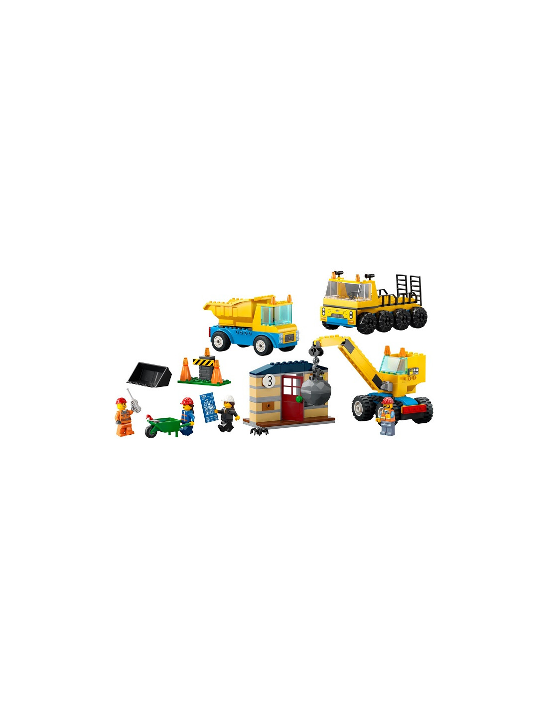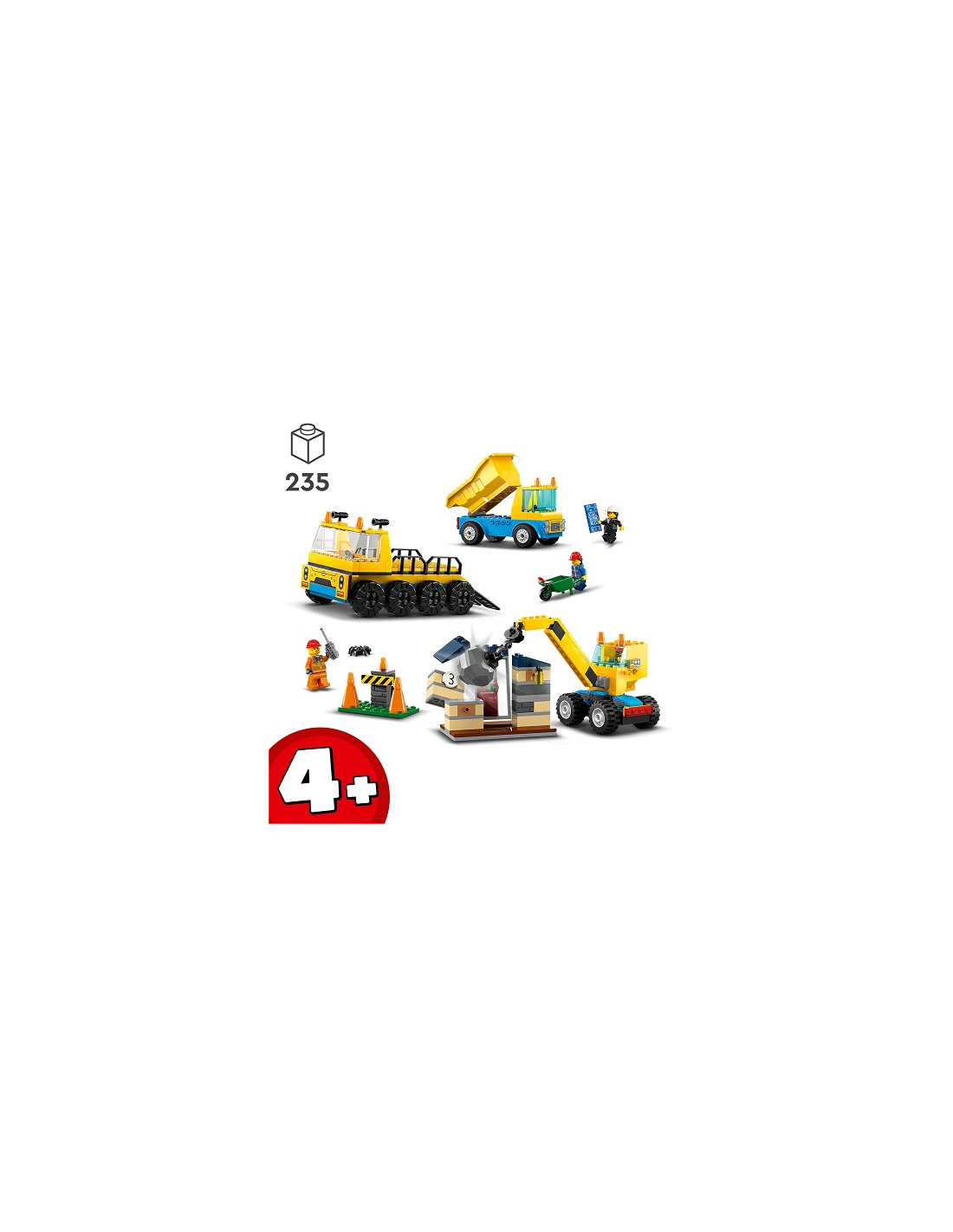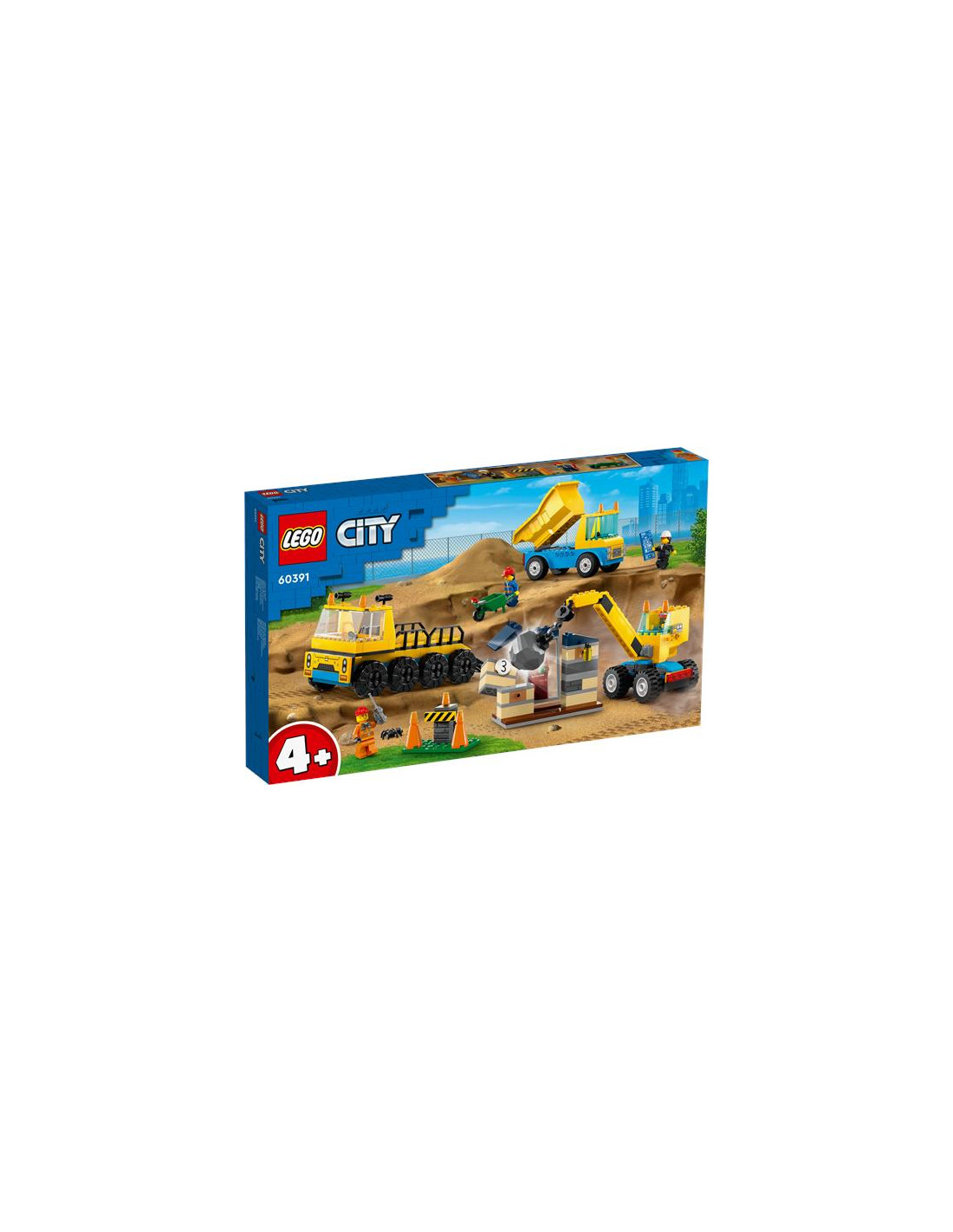 I bambini imparano a costruire e a giocare con il playset del Camion da cantiere e gru con palla da demolizione LEGO City (60391). Appositamente progettato per i bambini dai 4 anni in su, questo set da costruzione giocattolo contiene 3 veicoli costruibili, una casa abbandonata con funzionalità di abbattimento, 3 minifigure di operai e divertenti accessori per il gioco di fantasia.