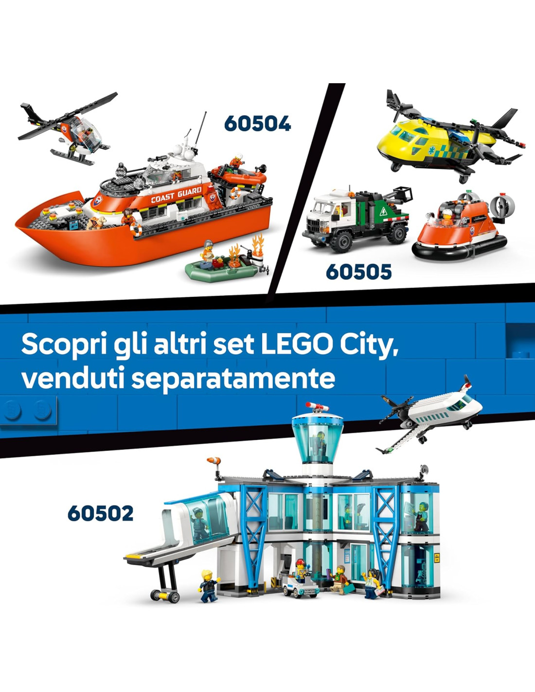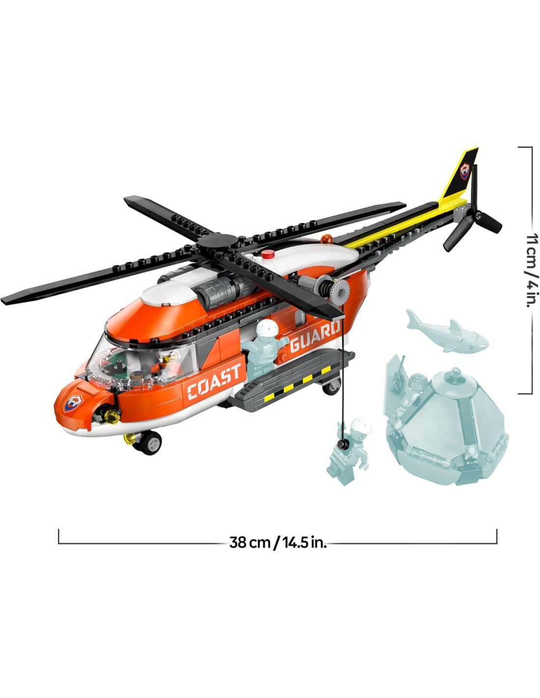 LEGO City Elicottero della Guardia Costiera Giocattolo - Veicolo di Emergenza con Porte Scorrevoli, Verricello, 4 Minifigure e Figura di Squalo
