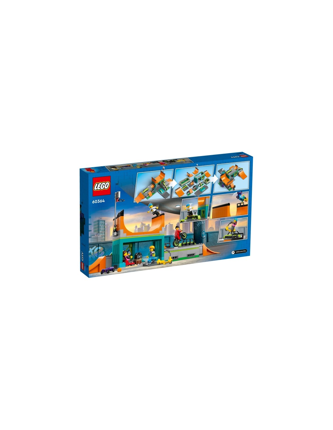 Il modello è ricco di spunti per il gioco di immaginazione e contiene anche moduli di rampa combinabili per diverse configurazioni del parco. Il set include una bicicletta BMX giocattolo, uno skateboard, un monopattino, rollerblade, 4 minifigure di skater e una base stradale LEGO da collegare ad altri set della gamma LEGO City.