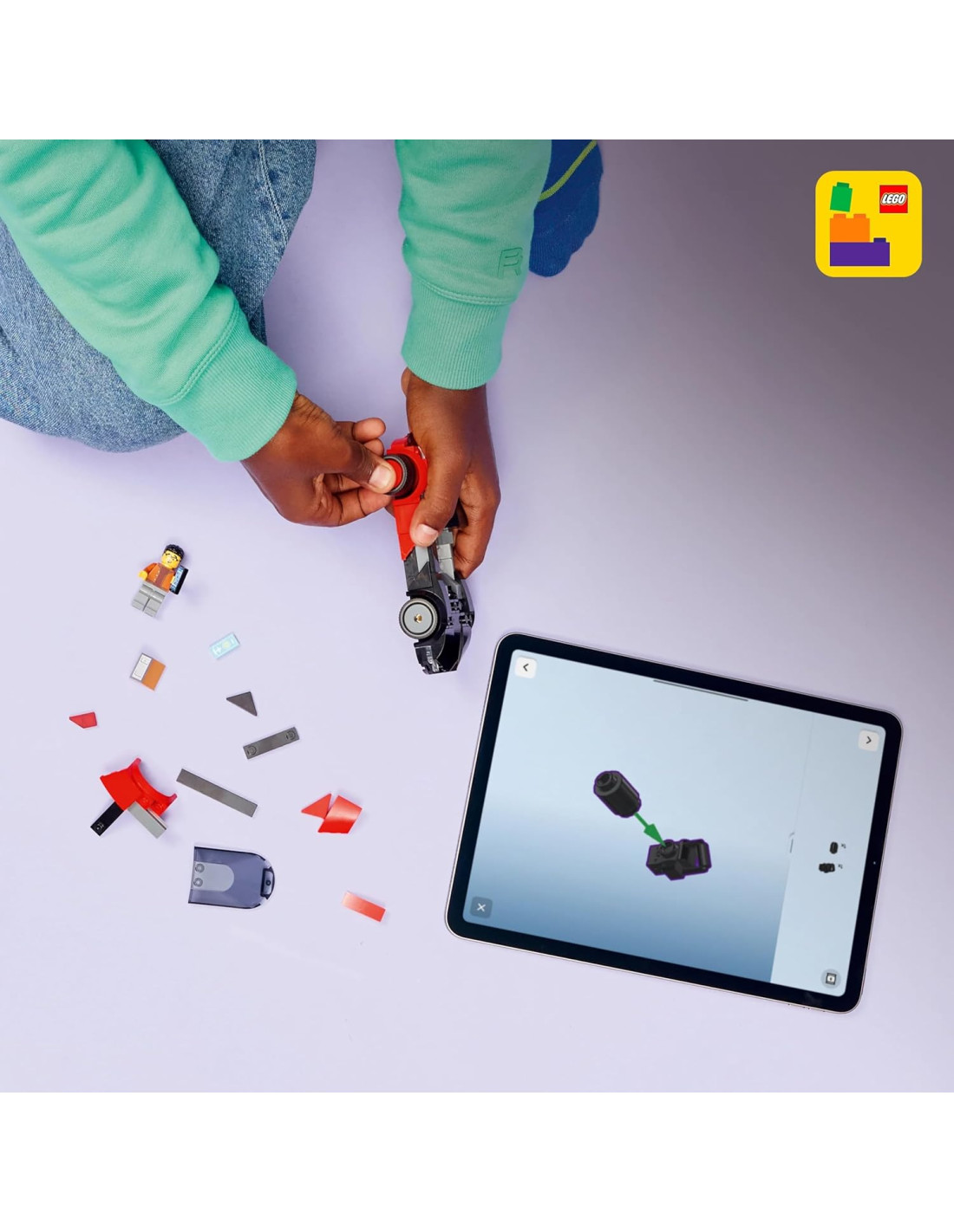 CARATTERISTICHE DEL VEICOLO GIOCATTOLO: il set permette di costruire un'auto sportiva con livrea rossa e nera, fanale posteriore a barra integrale, prese d'aria, pneumatici in gomma a basso profilo e un elegante design aerodinamico