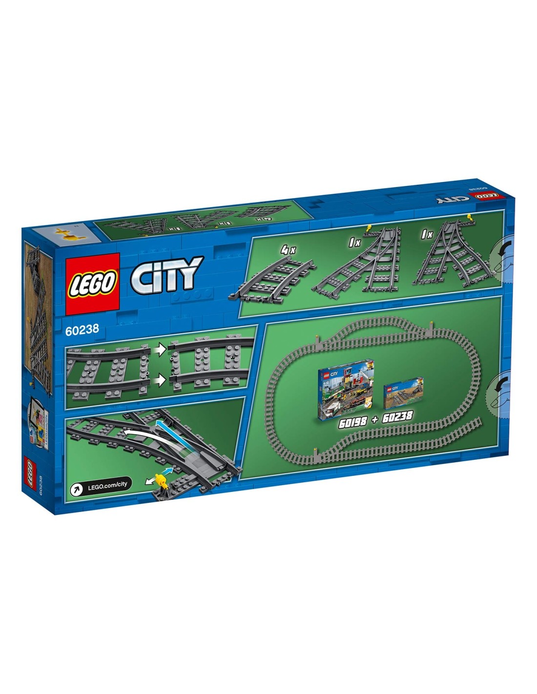 Aggiungi gli Scambi LEGO City 60238 ai i binari del treno merci per trasportare le merci o i passeggeri in modo ancora più efficiente e divertente.