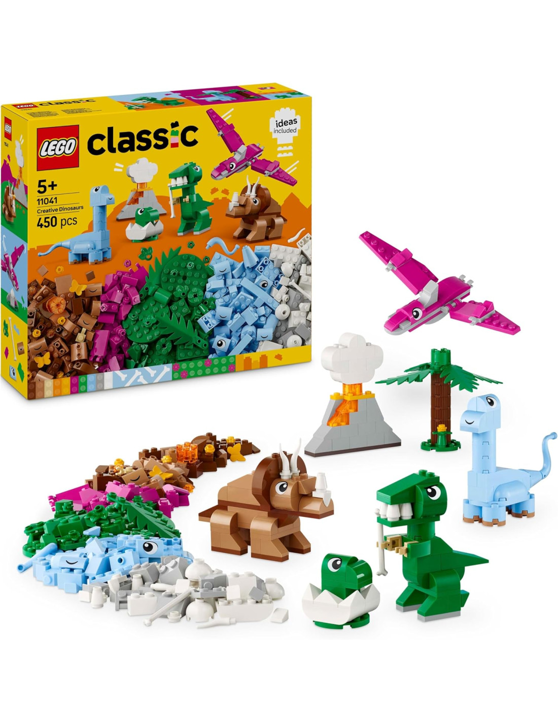 LEGO Classic Dinosauri Creativi, Giochi di Fantasia per Bambini e Bambine da 5 Anni in su con Colorati Animali Giocattolo da Costruire e Ricostruire come T. Rex e Triceratopo, Idea Regalo 11041